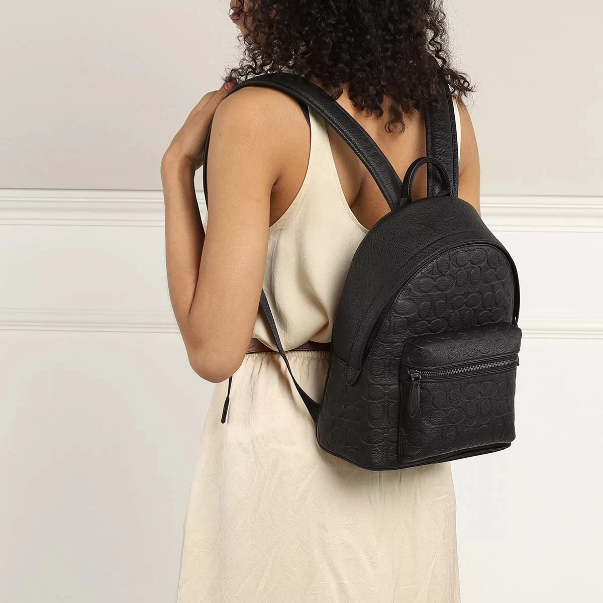 Der Charter Backpack 24 In Signature Pebble Leather Black von COACH ist locker und bleibt daneben alltagstauglich.