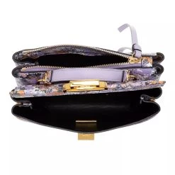 - Gefertigt aus genarbtem Leder in Violett mit Print
