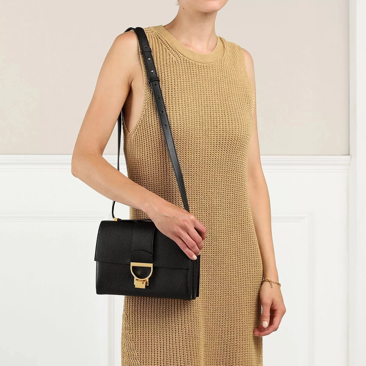 Als besonders klassisch und schlicht zeigt sich die leicht handhabbare Crossbody Bag Arlettis Handbags Noir von COCCINELLE. Die italienische Traditionsmarke COCCINELLE begeistert seit 1978 durch außergewöhnliche und hochwertige Designs. Italienische und kultige Individualität – die Produktlinie Arlettis von COCCINELLE repräsentiert vielseitige, praktische Designs im eleganten und legeren Stil. Das genarbte, schwarze Leder verschafft der Crossbody Bag eine langlebige Oberfläche sowie einen relaxten Charakter. Mit goldfarbenen Metalldetails setzt die Crossbody Bag jeden Style edel in Szene. Der Tascheninhalt lässt sich sicher und flexibel in zwei Hauptfächern verstauen. Für Ordnung und separaten Schutz sorgen zwei praktische Zusatzfächer. Es ist außerdem ein Außenfach angebracht, welches einen schnellen Zugriff auf wichtige Kleinigkeiten möglich macht.