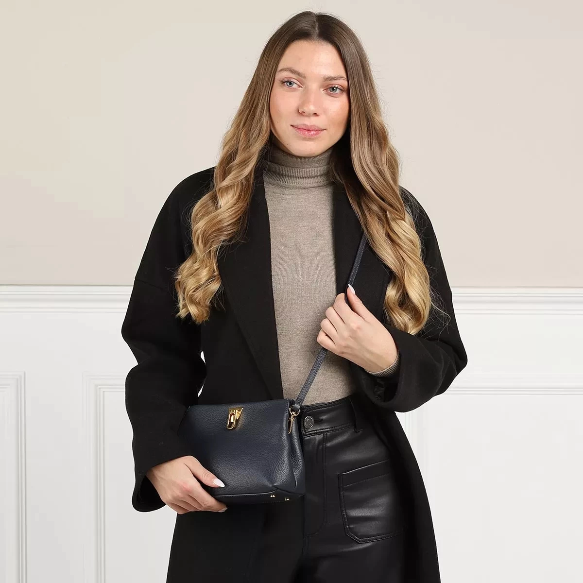Als besonders sportlich und modern zeigt sich die in Italien hergestellte, handliche Crossbody Bag Beat Clutch Midnight Blue von COCCINELLE.