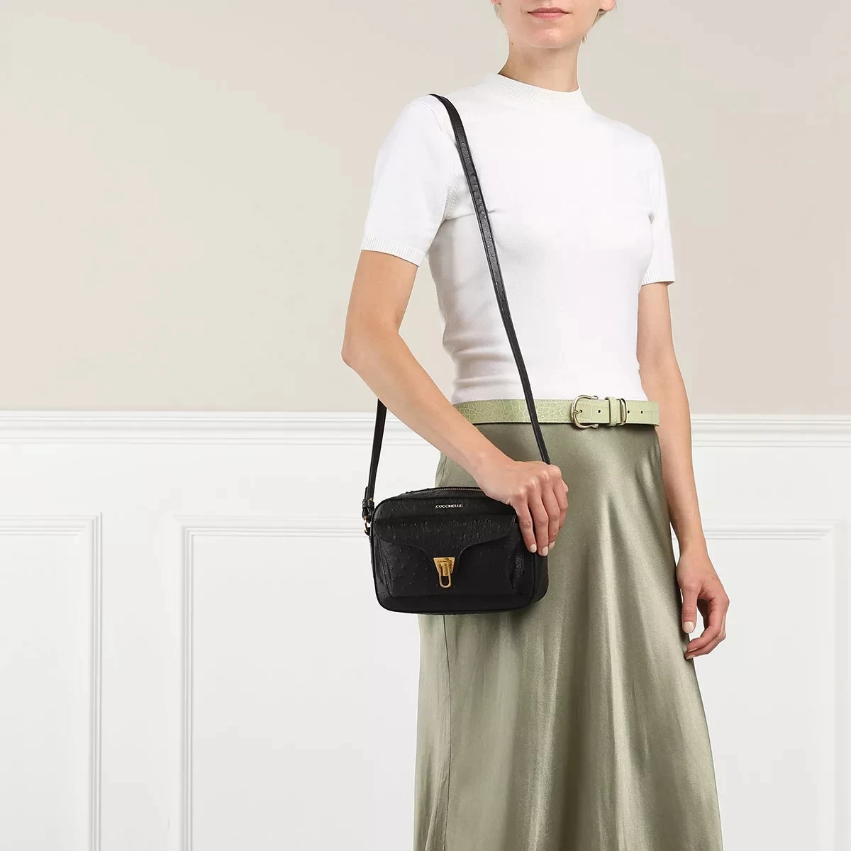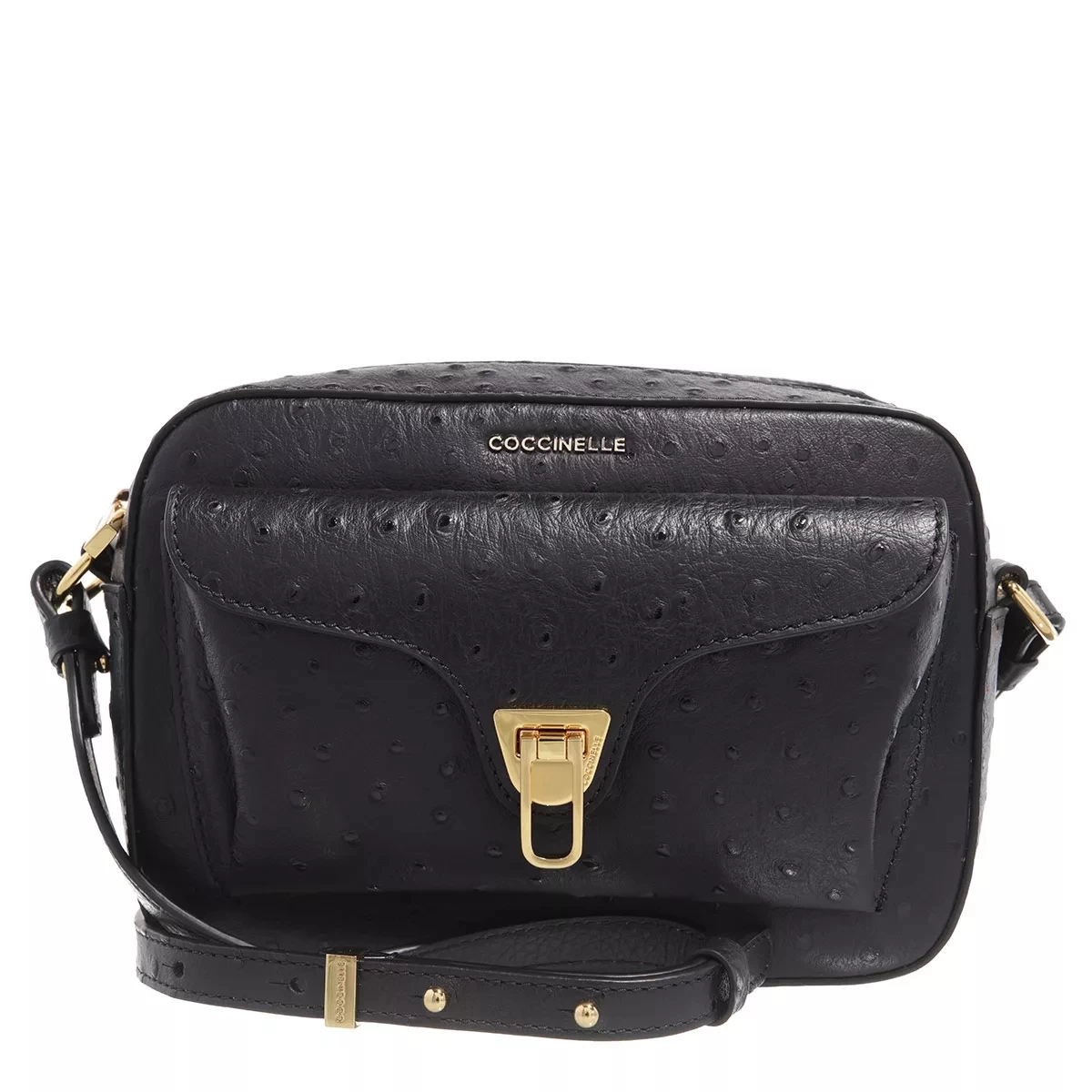 Als besonders schick und minimalistisch erweist sich die leicht handhabbare Crossbody Bag Coccinelle Beat Ostrich Handbags Noir von COCCINELLE.