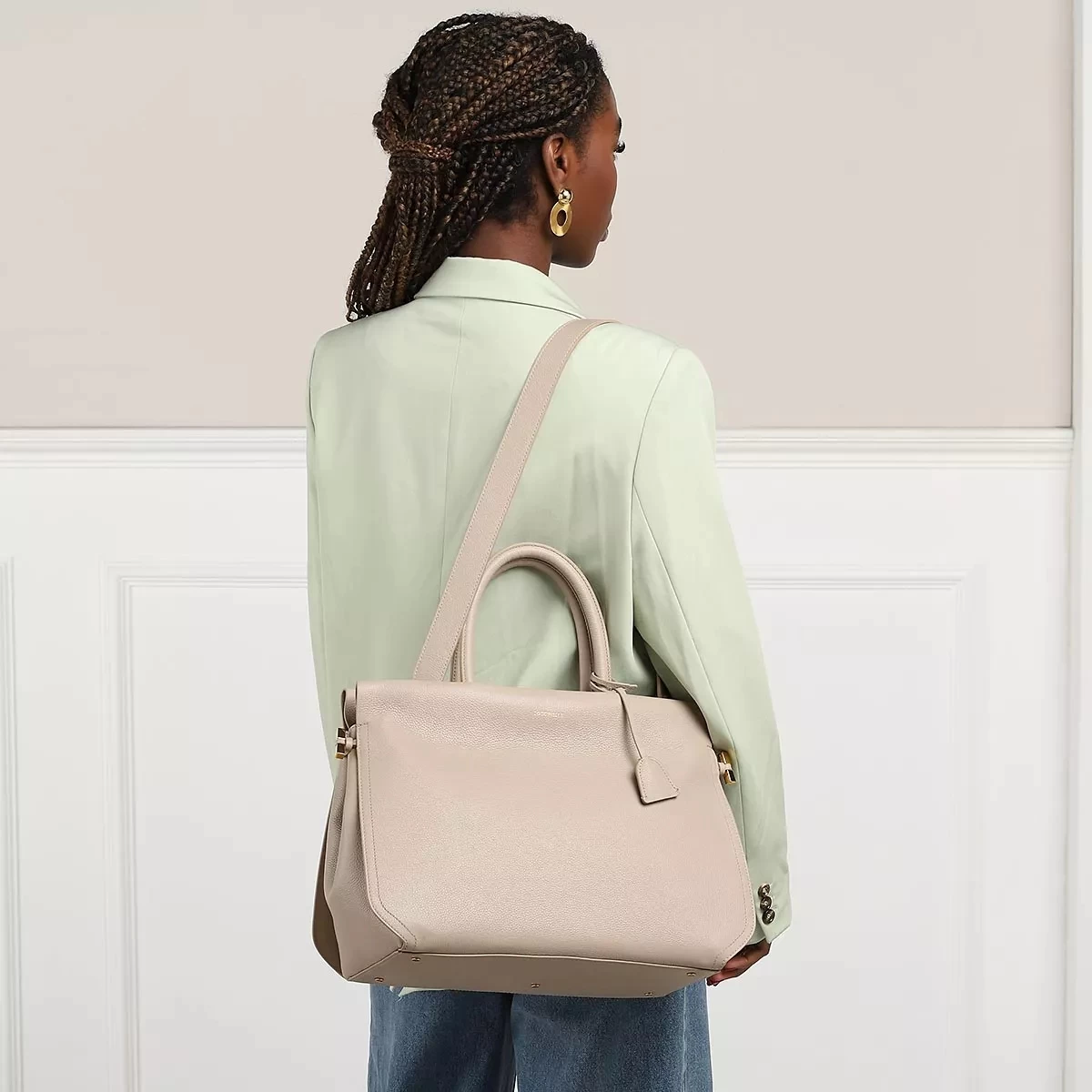 - Bestehend aus genarbtem Leder in Beige