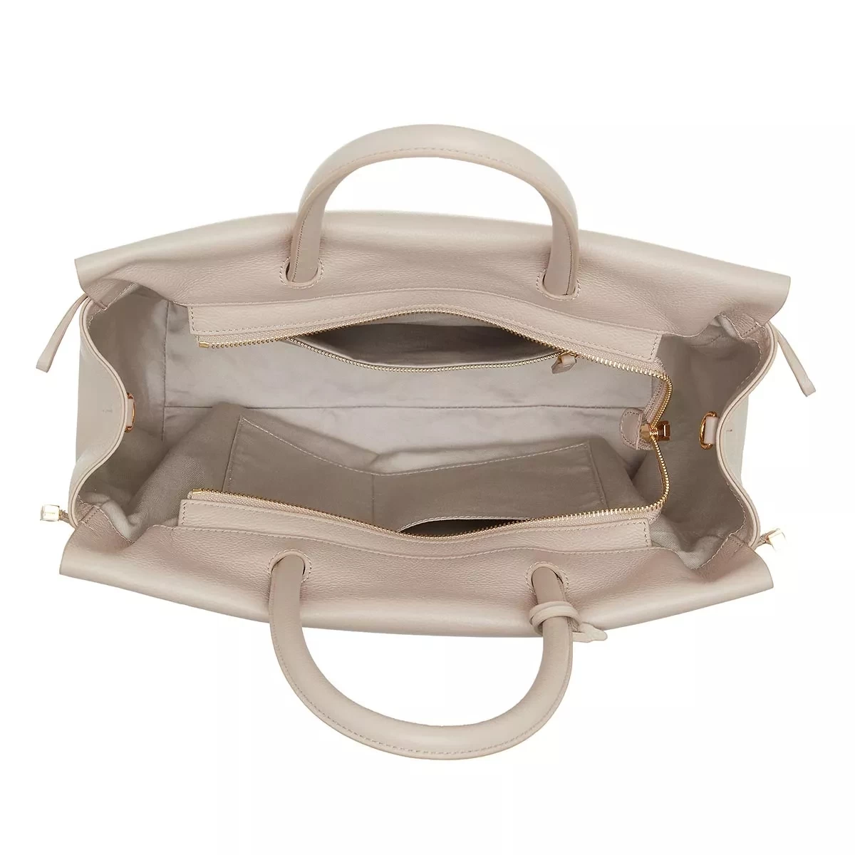 - Innenmaterial aus praktischem, beigem Textil mit Designerlogo