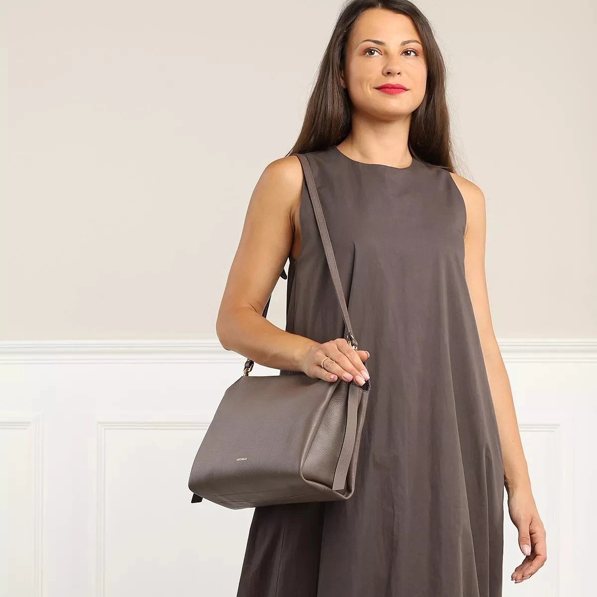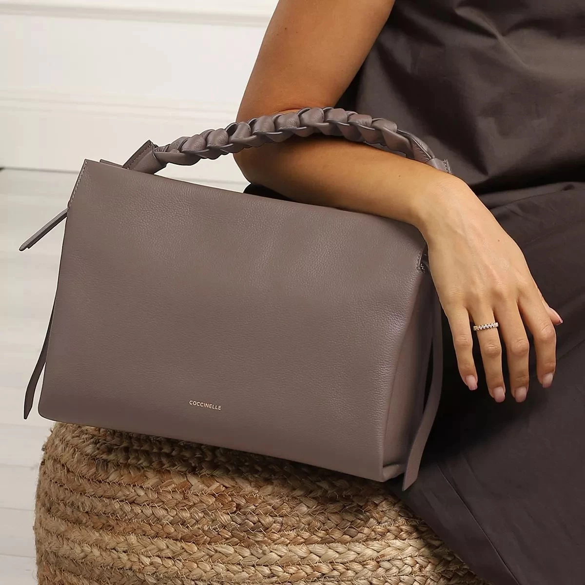 Als besonders zeitlos und schick zeigt sich die alltagstaugliche Crossbody Bag Boheme Grana Double Coffee Pulp Pink von COCCINELLE.