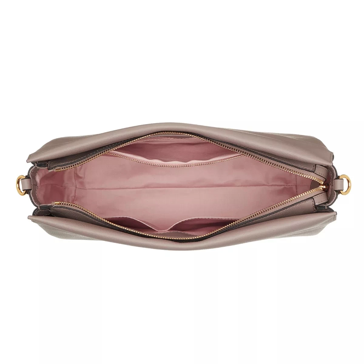 - Tascheninneres bestehend aus weichem, rosafarbenem Textil mit Markenlogo