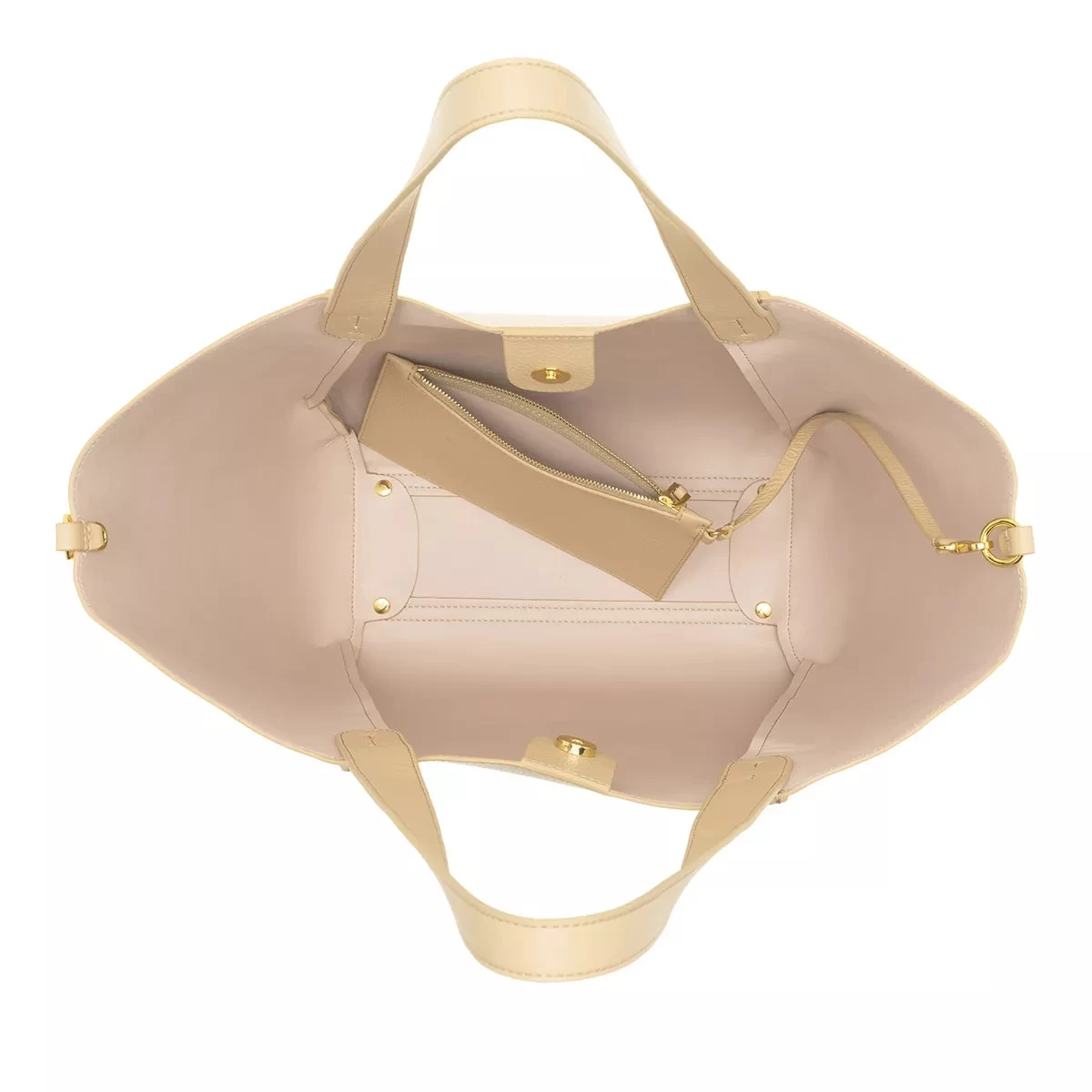 - Gefertigt aus genarbtem Leder in Beige
