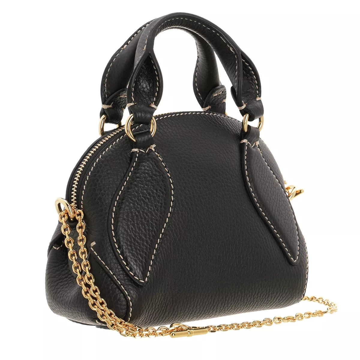 - Langlebige Textur aus genarbtem Leder in Schwarz mit Ziernähten für einen relaxten Charakter