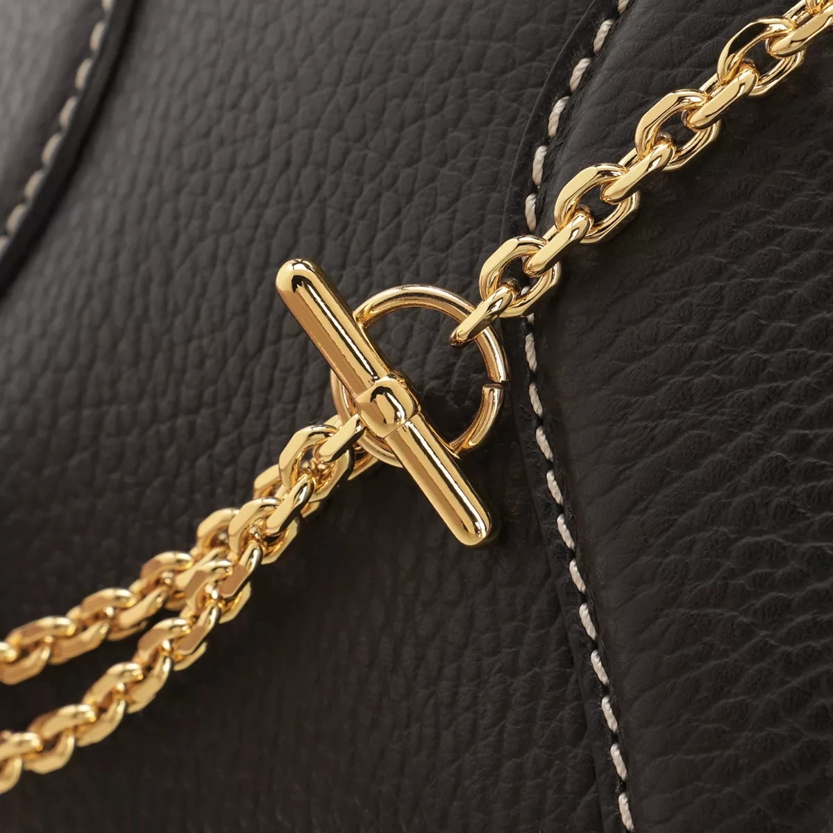 - Ein abnehm- und verstellbarer Schulterriemen aus einer edlen Metallkette fĂĽr einen einfachen Griff sowie praktische und individuelle Tragekombinationen (ca. 100 cm bis 128 cm)