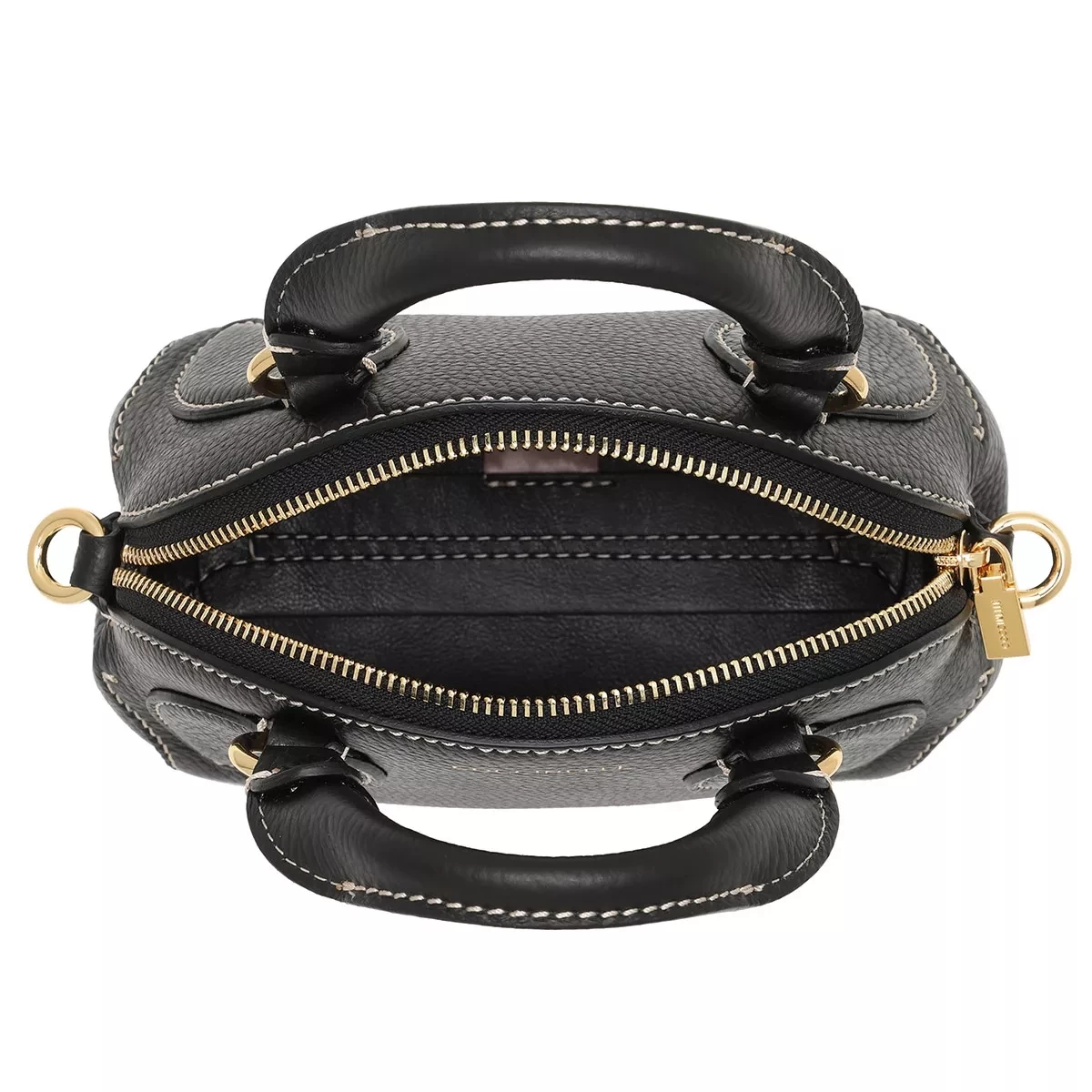 - Tascheninneres aus langlebigem, schwarzem Leder mit Designerlogo