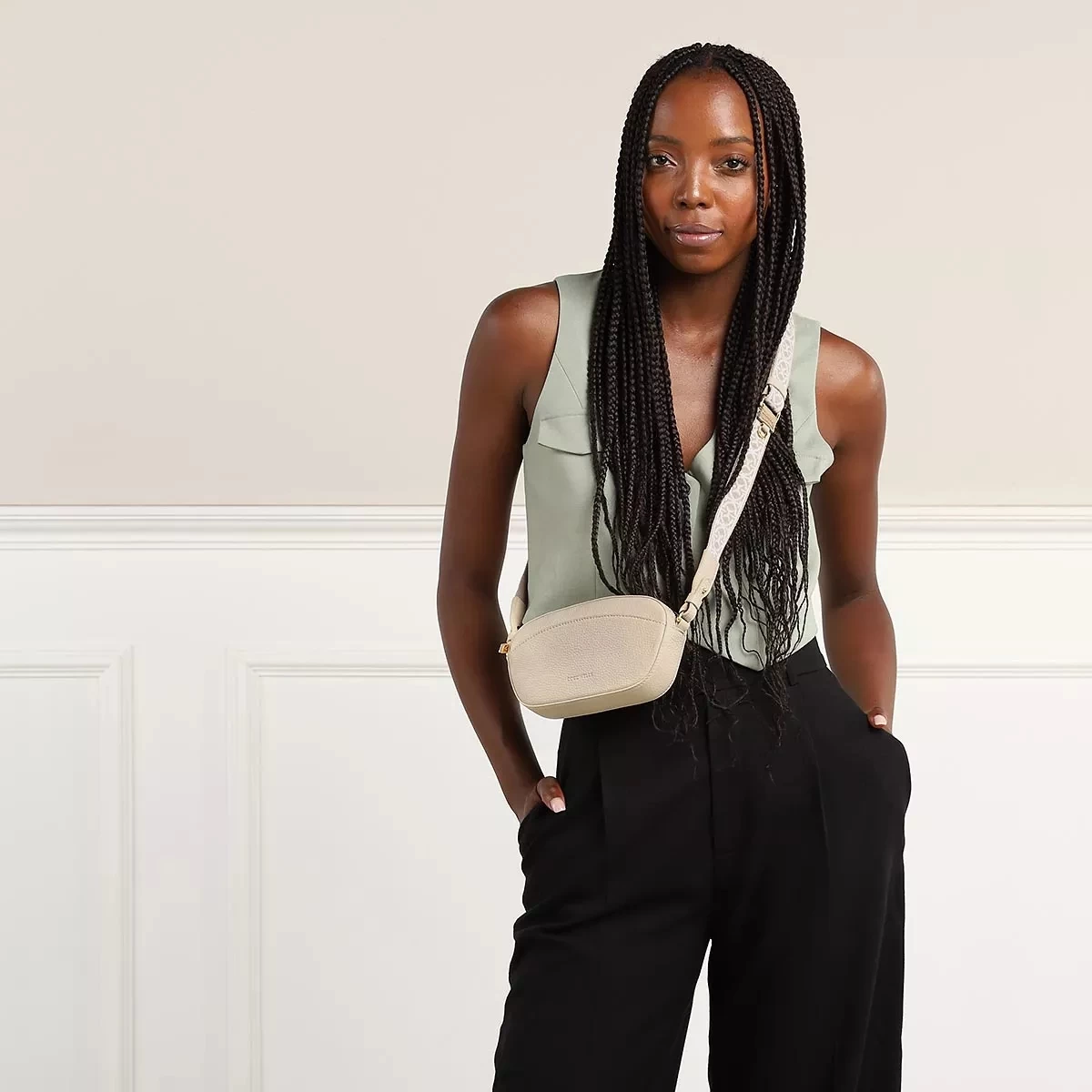 - Ein abnehm- und verstellbarer Schulterriemen aus weichem Textil fĂĽr einen einfachen Griff sowie flexible und individuelle Tragevariationen (ca. 92 cm bis 138 cm)