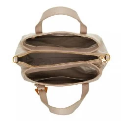 - Innenmaterial bestehend aus weichem, beigem Textil mit Markenlogo