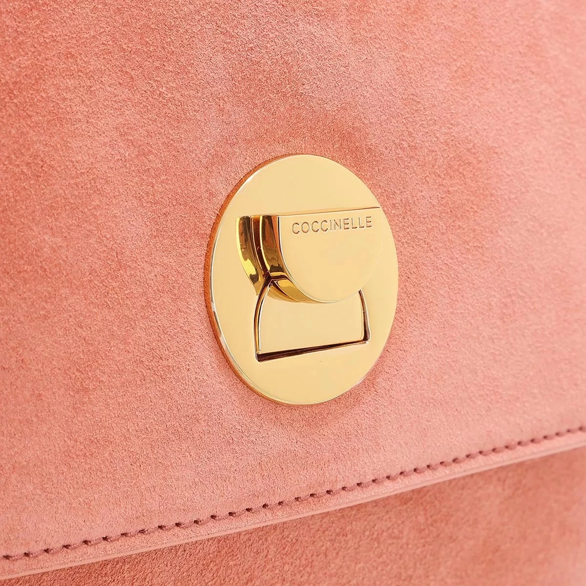 Als besonders glamourös und detailverliebt zeigt sich die handliche Crossbody Bag Liya Suede Tote Bag Geranium/Gerani von COCCINELLE.