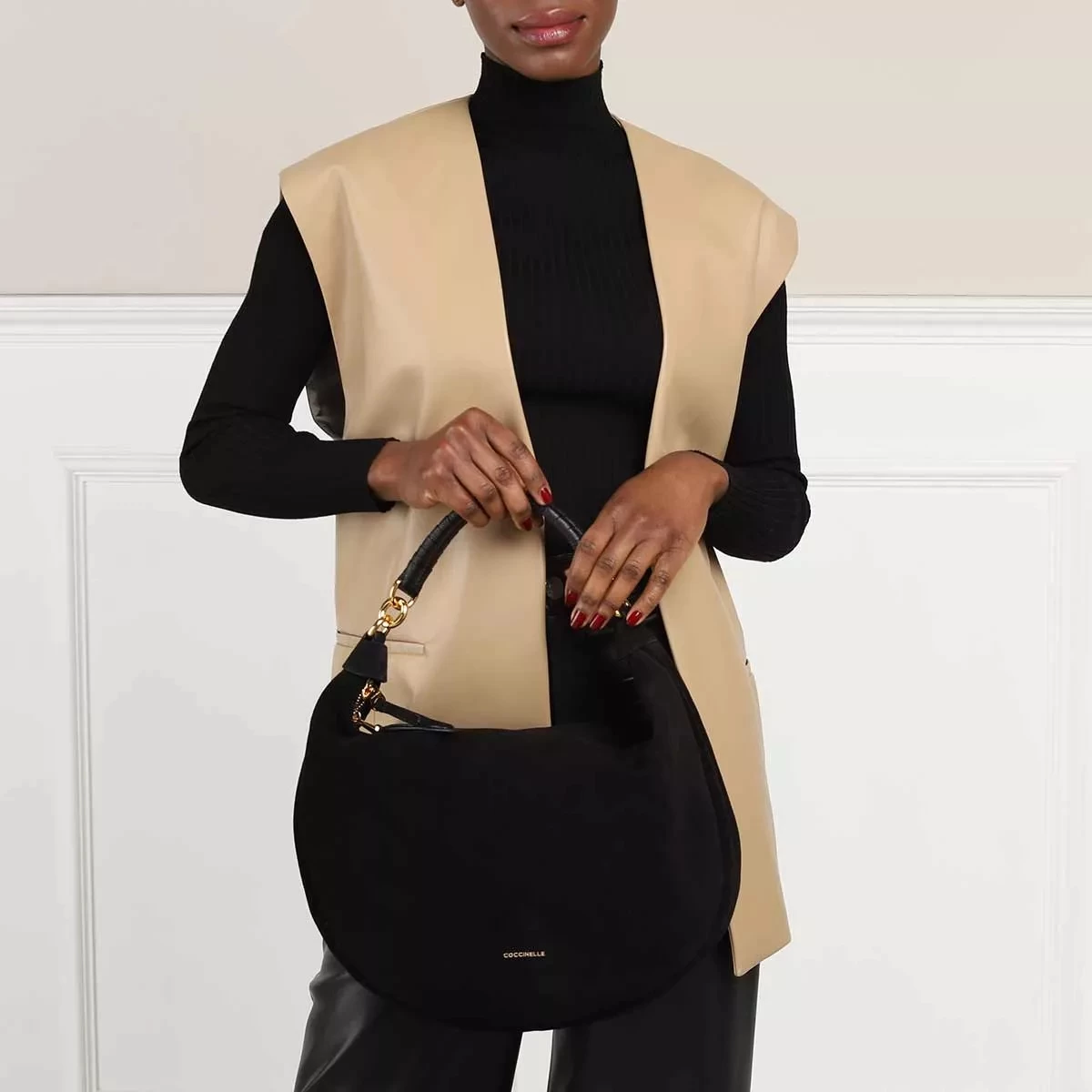 Die in Italien hergestellte, funktionale Hobo Bag Maelody Suede Noir/Noir von COCCINELLE vereint einen lässigen und entspannten Look.