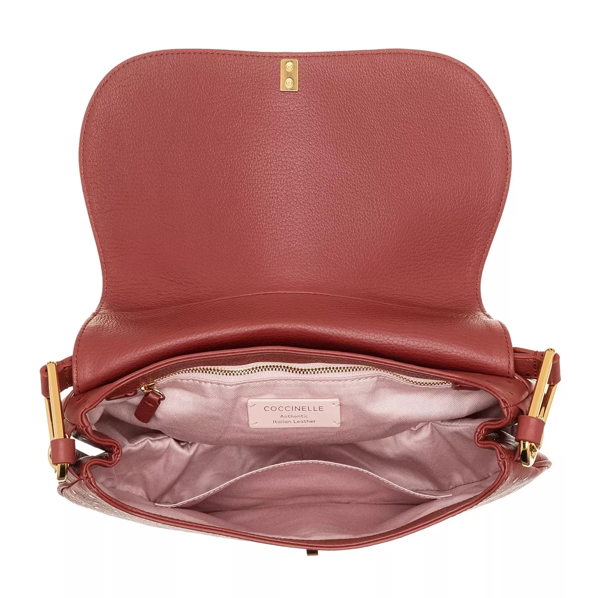 Die leicht handhabbare Saddle Bag Coccinellemagie Ostrich Handbags Acero von COCCINELLE vereint einen nostalgischen und detailverliebten Look.