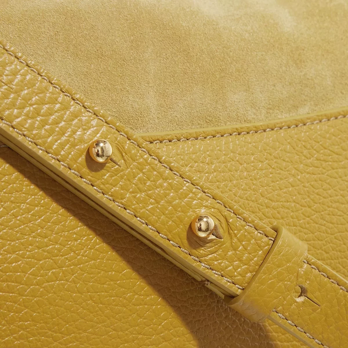 - Warme Textur gefertigt aus genarbtem Leder und Rauleder in Gelb für einen bohemianen, luxuriösen Charakter
