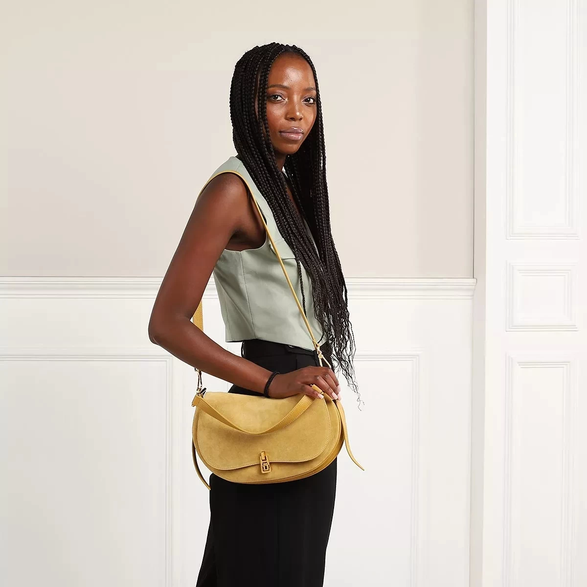 Als besonders vielseitig zeigt sich die Hobo Bag Magie Suede Bim Citronella Citrone von COCCINELLE.