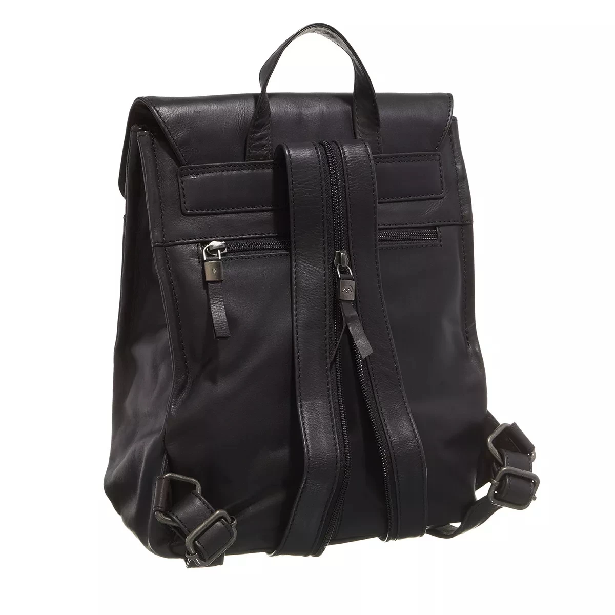 - Lässige Oberfläche gefertigt aus Leder in Schwarz im Vintage-Look für einen relaxten Charakter
