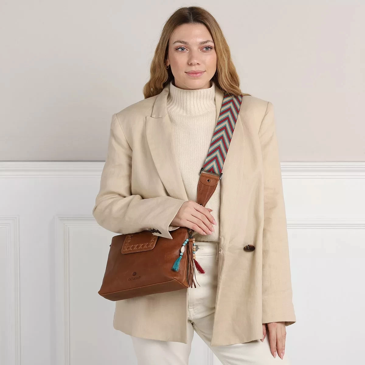 - Ein abnehm- und verstellbarer Schulterriemen aus langlebigem Leder für einen stabilen Halt sowie flexible und individuelle Tragekombinationen (ca. 90 cm bis 157 cm), mit einem zusätzlichen, austauschbaren Schulterriemen