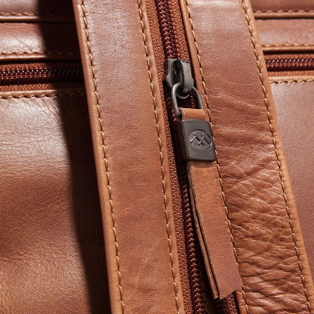 - Zwei verstellbare Schulterriemen aus robustem Leder fĂŒr einen stabilen Halt sowie individuelle Tragekombinationen (ca. 75 cm bis 85 cm)
