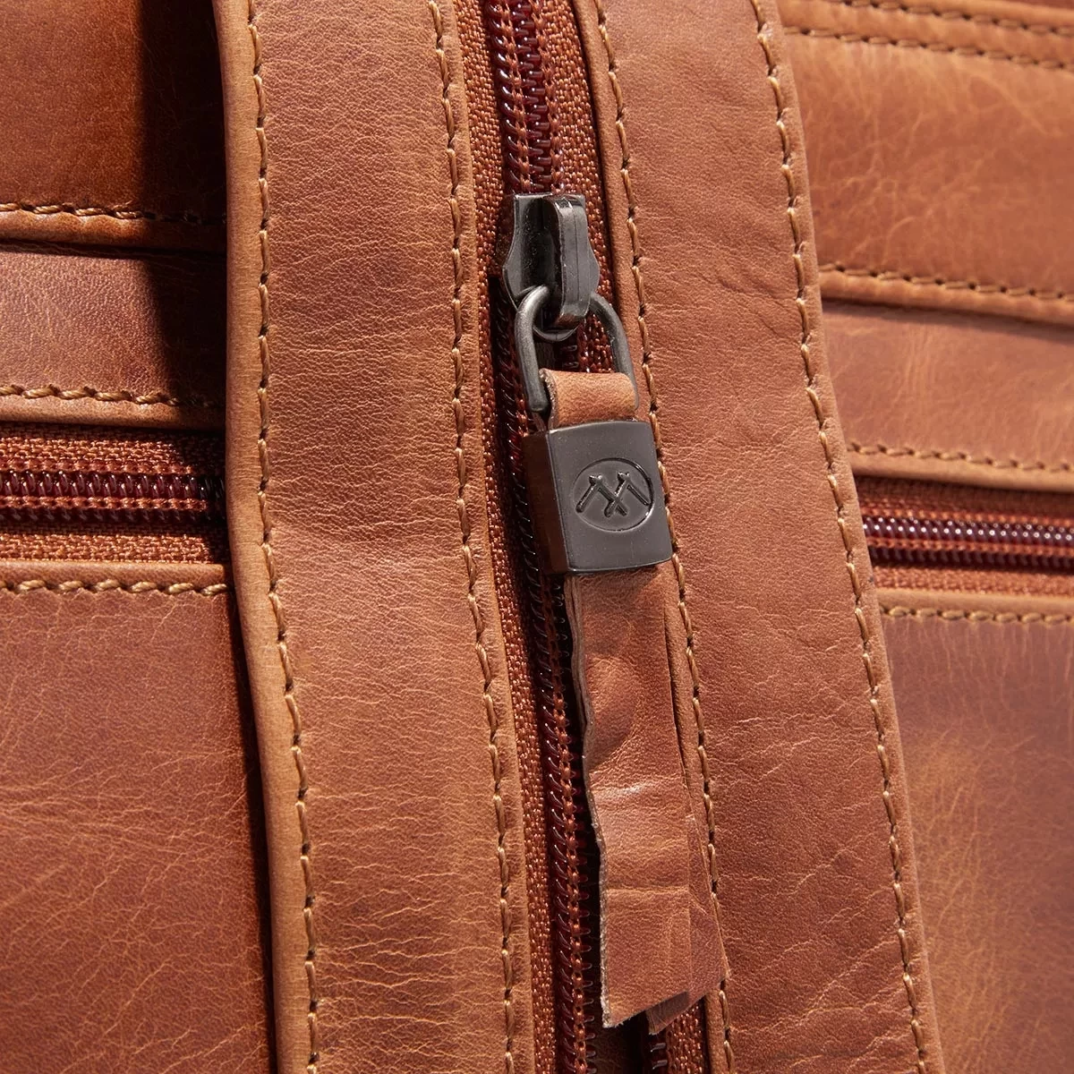 - Lässige Textur gefertigt aus Leder in Cognacbraun mit Vintage-Effekt für einen relaxten Charakter