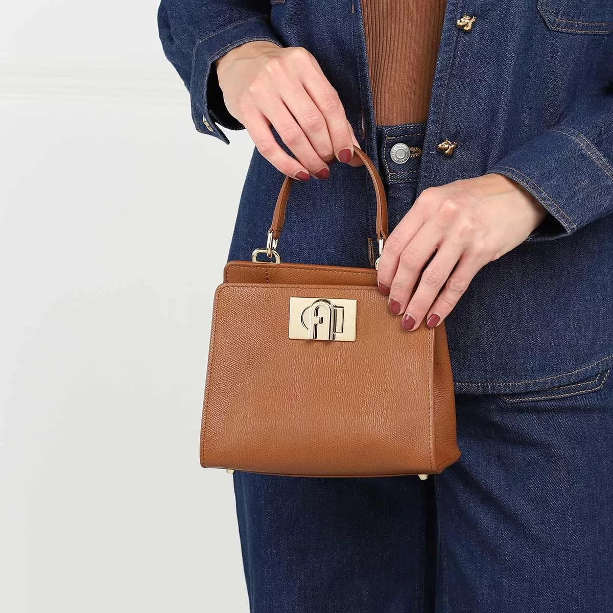 Als besonders leger und qualitativ zeigt sich die in Italien hergestellte, handliche Minitasche Furla 1927 Mini Top Handle 19 Cognac von Furla.