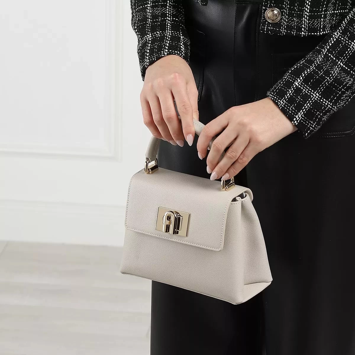 Als besonders vielseitig zeigt sich die Satchel Furla 1927 Mini Top Handle Perla von Furla.