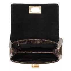 - Aus geprägtem Leder in Braun mit Print, im Metallic-Look
