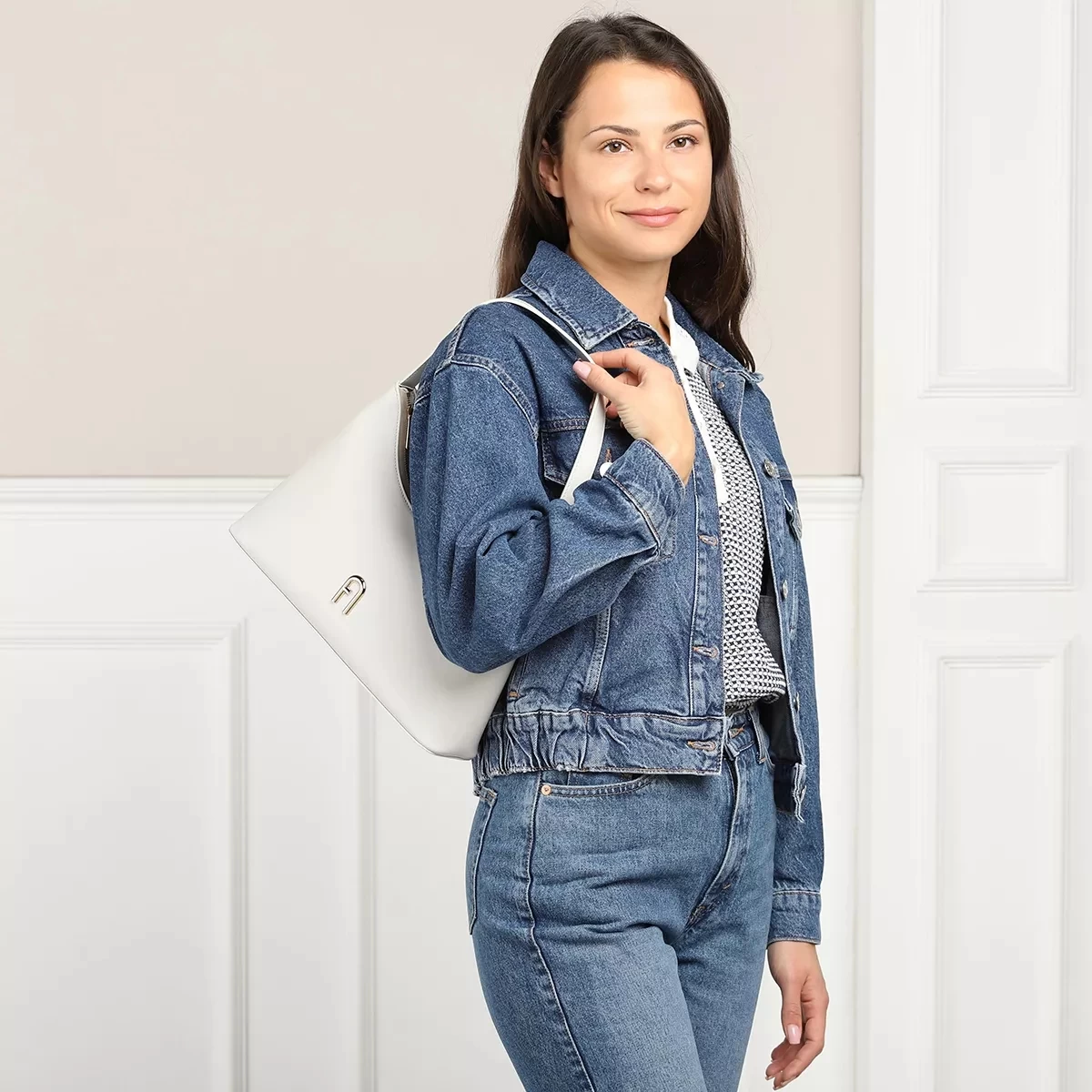 Klassisch und entspannt – das ist die vielseitige Hobo Bag FURLA DIAMANTE S SHOULDER BAG Marshmallow von Furla.