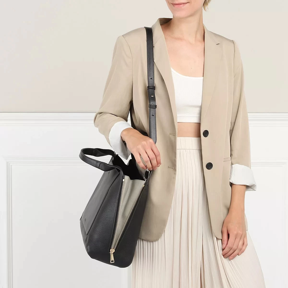 Als besonders modern und alltagstauglich zeigt sich die Hobo Bag FURLA GILDA L TOTE Nero Marmo von Furla.