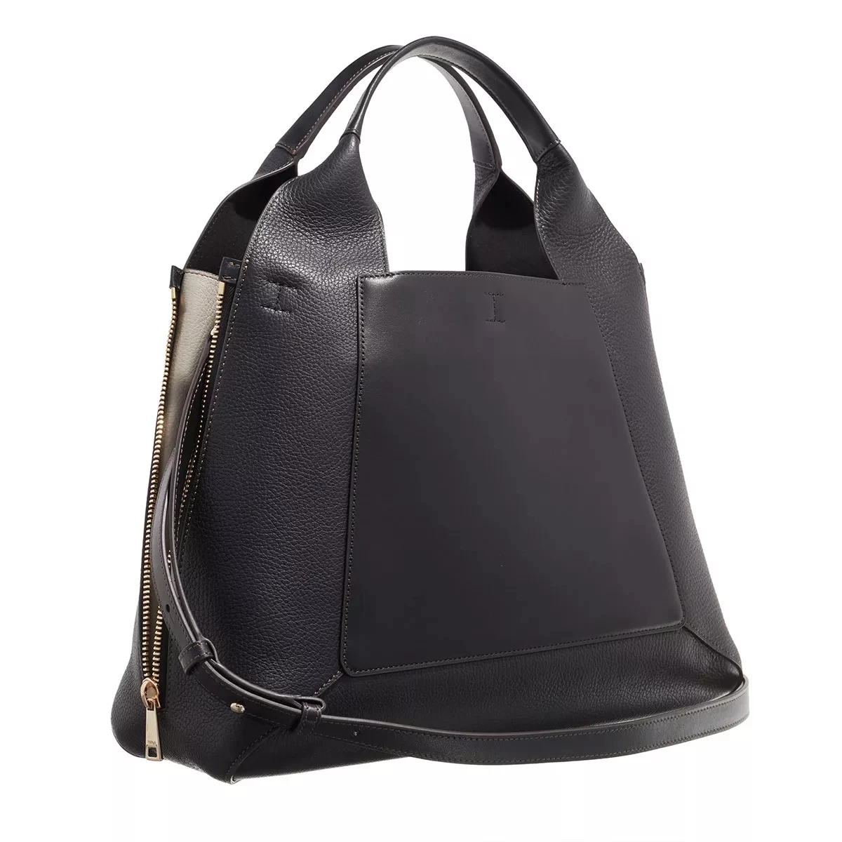 - Bestehend aus genarbtem Leder in Schwarz