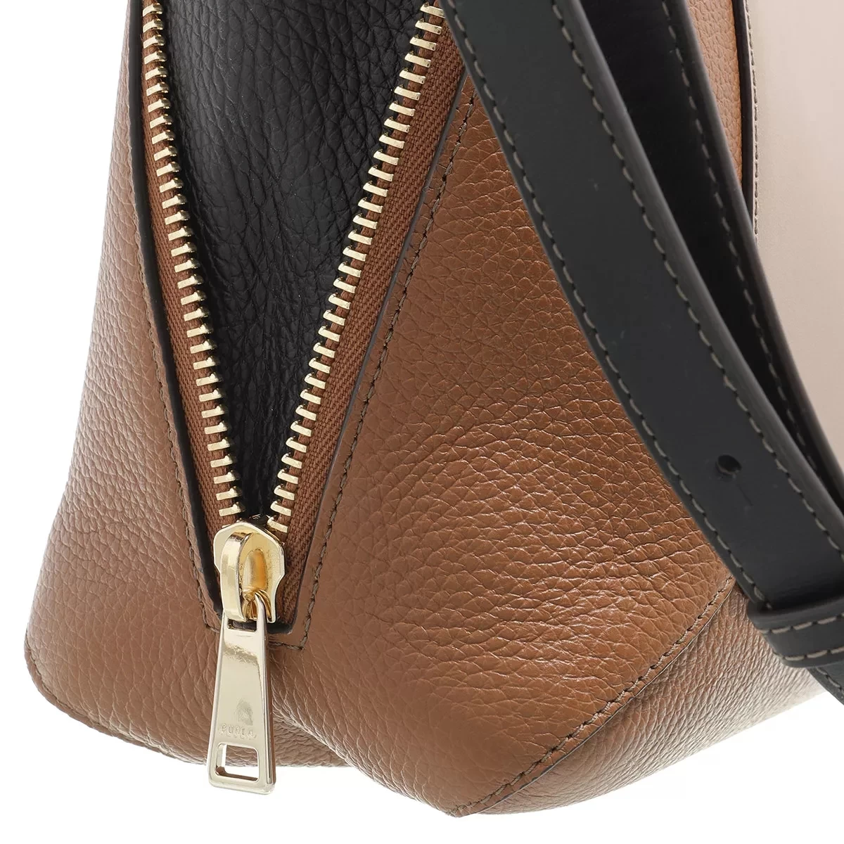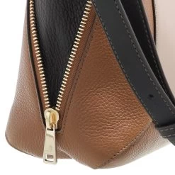 - Gefertigt aus genarbtem Leder und Glattleder in Braun und Grau