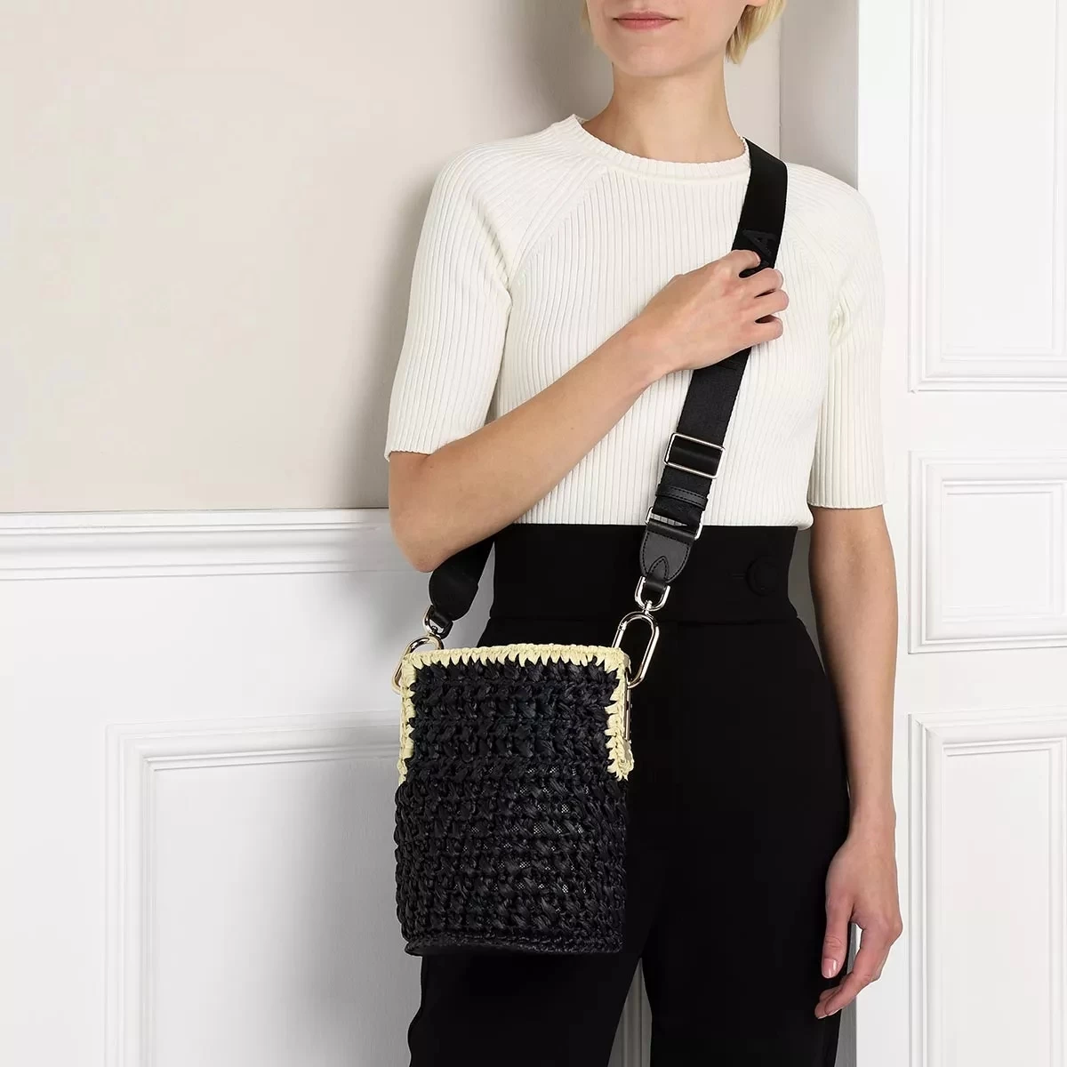 Entspannt und locker: Das ist die vielseitige Crossbody Bag Furla Lipari S Bucket Bag – Tessuto Rafia Uncinett Nero von Furla.