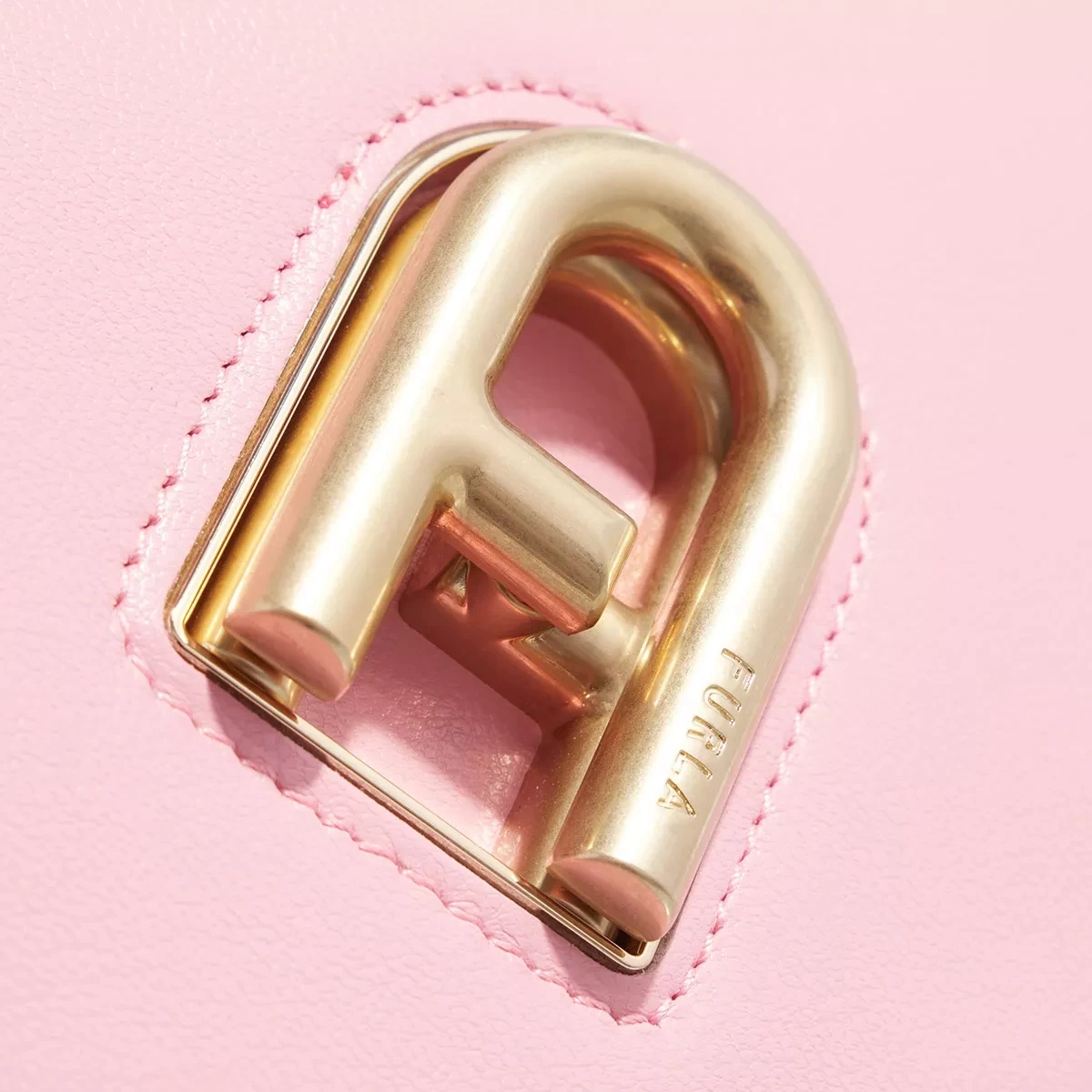 Als besonders detailverliebt und schlicht erweist sich die in Italien hergestellte, vielseitige Crossbody Bag FURLA MY JOY MINI CROSSBODY Geranium von Furla.