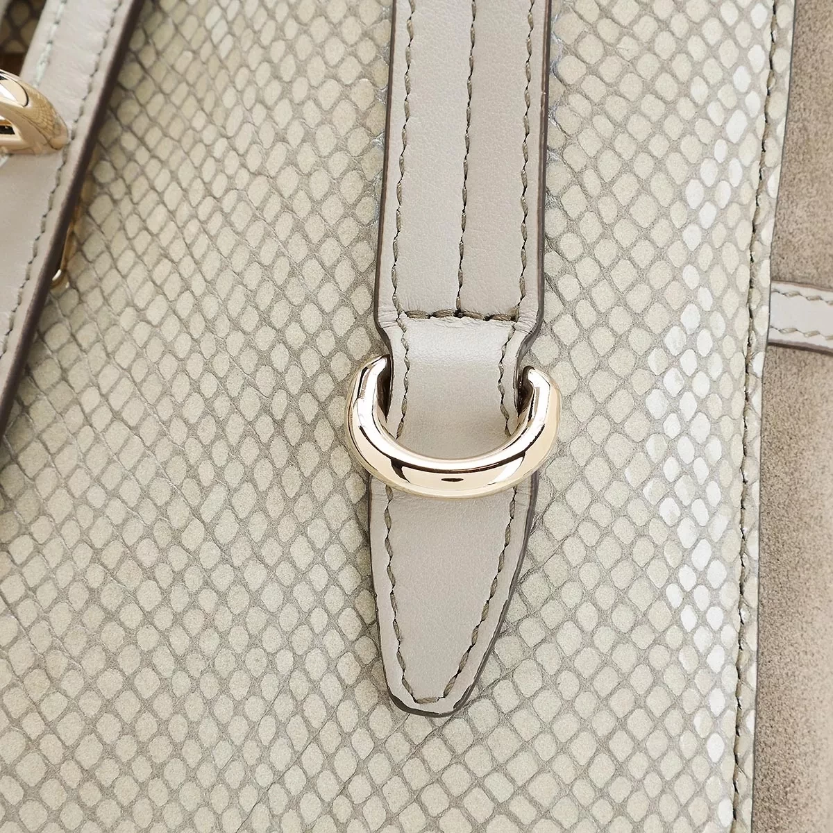 - Gefertigt aus geprägtem Glattleder und geprägtem Rauleder in Grau