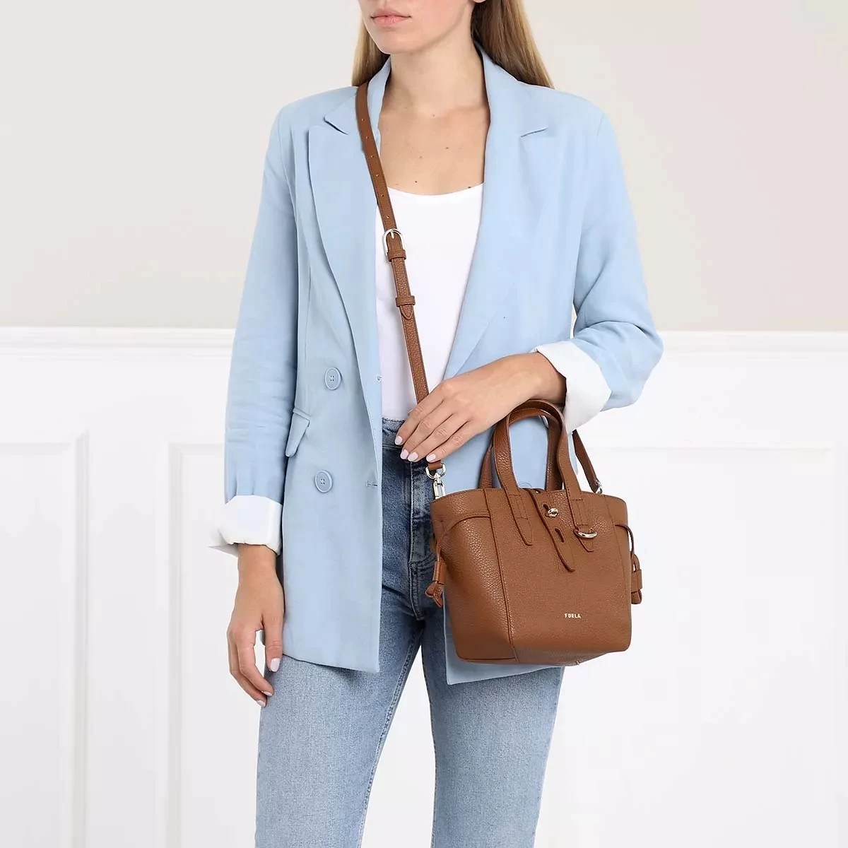 Als besonders entspannt und locker erweist sich die leicht handhabbare Tote Bag Net Mini Tote Cognac von Furla. Bestehend aus Leder in Cognacbraun ist die Tote Bag ein langlebiges Accessoire mit hochwertiger Oberfläche.