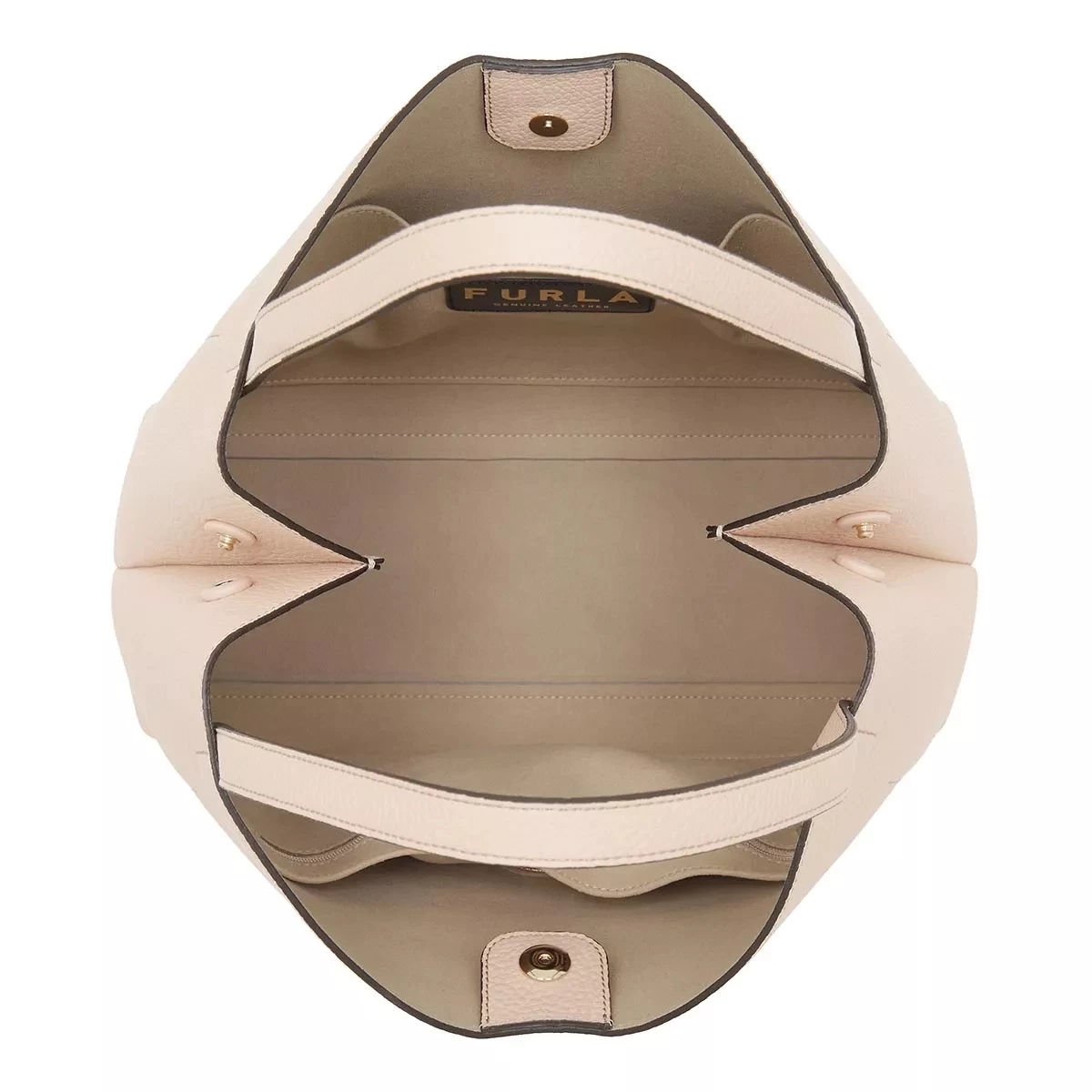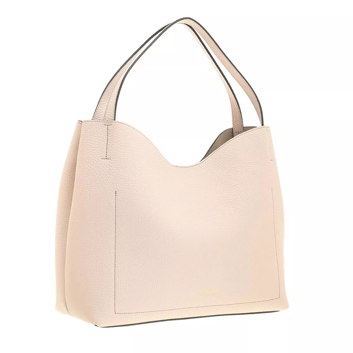Die Primula L Hobo Ballerina I von Furla ist lässig und bleibt dazu handlich. Das genarbte Leder in Rosa verschaffen der Hobo Bag eine stabile Textur sowie einen relaxten Charakter. Mit goldfarbenen Metalldetails setzt die Hobo Bag jeden Look edel in Szene. Der Tascheninhalt lässt sich sicher und unkompliziert in einem Hauptfach verstauen. Für Ordnung und separaten Schutz sorgen drei praktische Zusatzfächer.