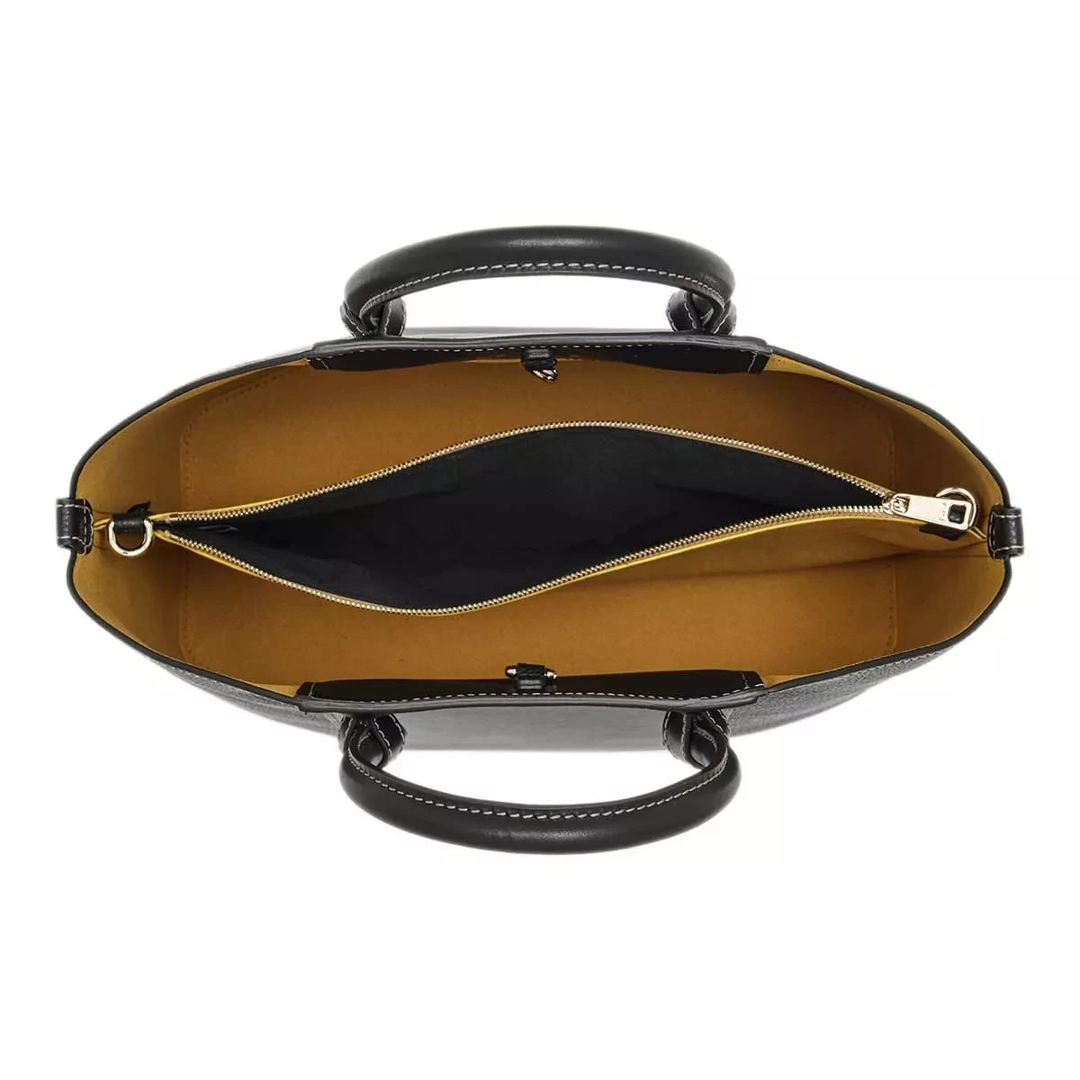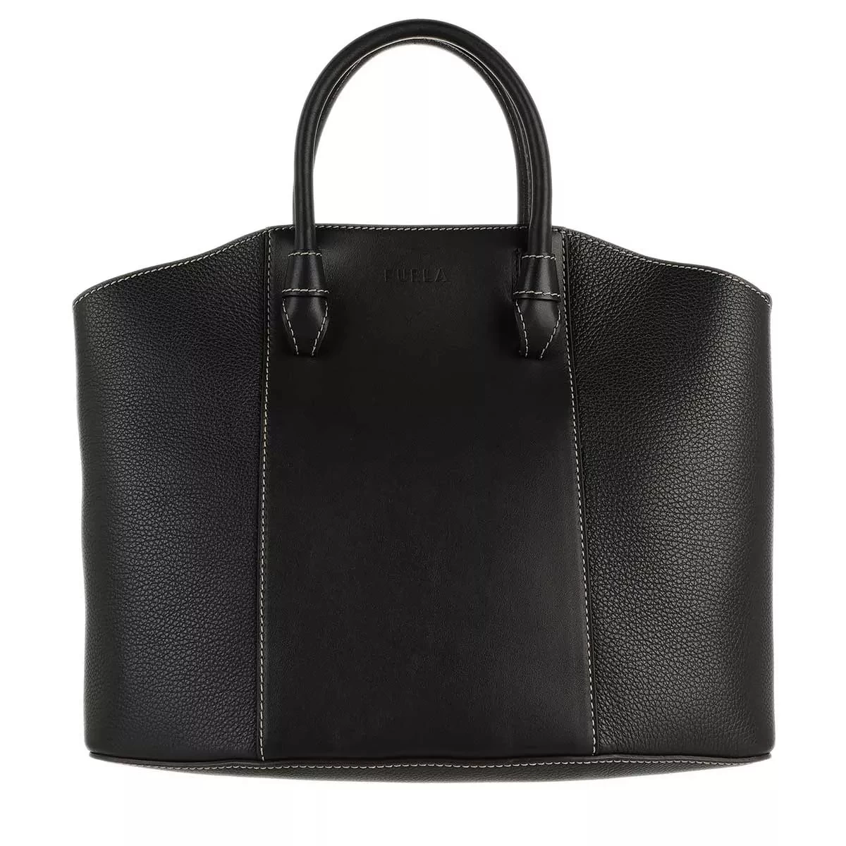 Schlicht und schick – das ist die geräumige Tote Bag Vitello Roma Eracle Nero von Furla. Sie besteht aus genarbtem Kalbsleder und Glattleder vom Kalb in Schwarz, die ihr eine vollnarbige Oberfläche verschaffen. Goldfarbene Metalldetails vervollständigen das stilvolle Aussehen der Tote Bag. Der Tascheninhalt lässt sich flexibel und unkompliziert in zwei Hauptfächern verstauen. Für Ordnung und separaten Schutz sorgen drei praktische Zusatzfächer.