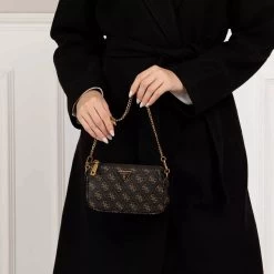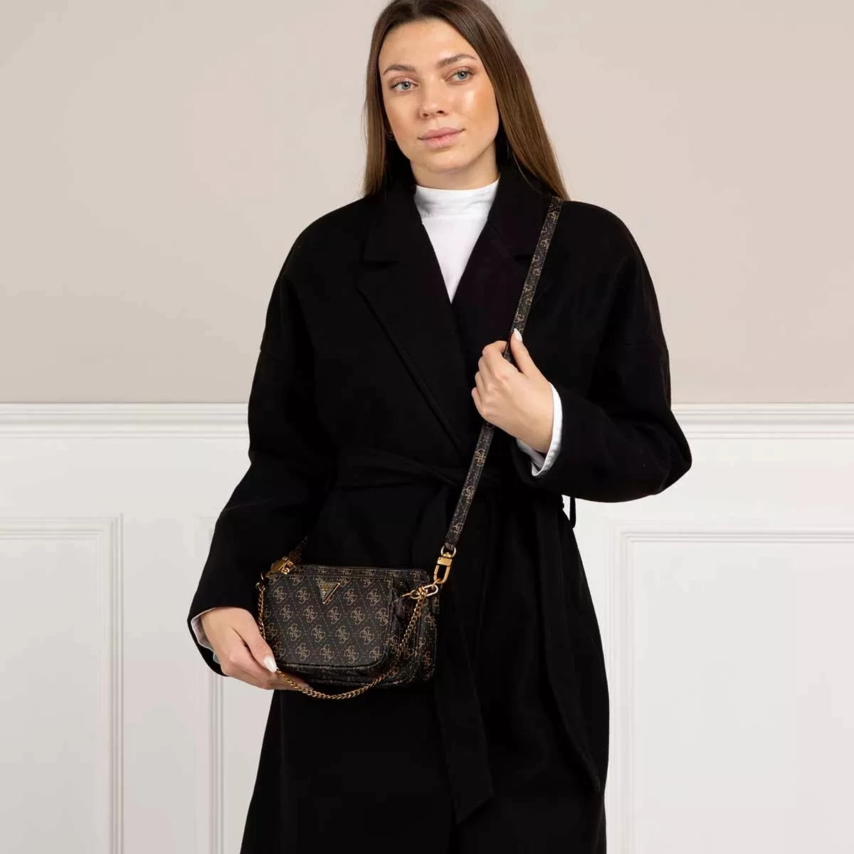 Die Alexie Double Pouch Crossbody Brown Logo von Guess ist lässig und dazu leicht handhabbar.