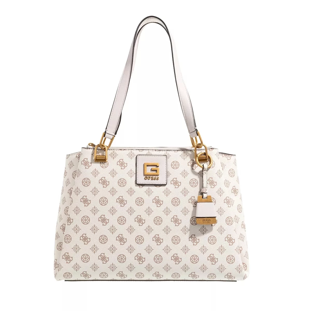 Als besonders leicht handhabbar und praktisch zeigt sich der Shopper Alva Status Carryall Cream Logo von Guess.