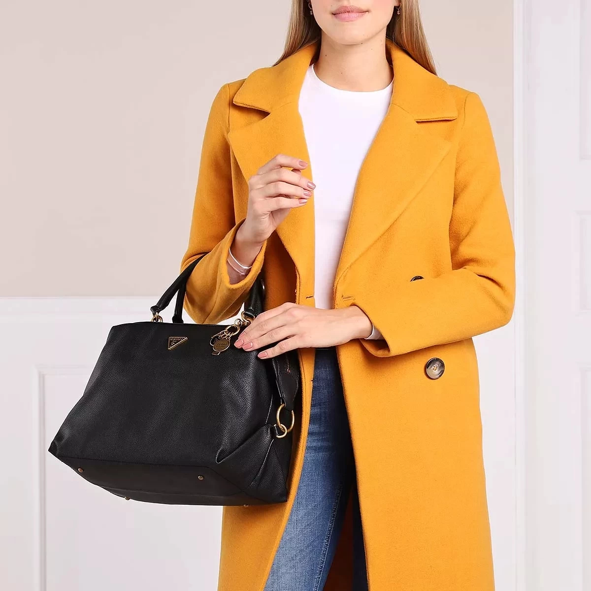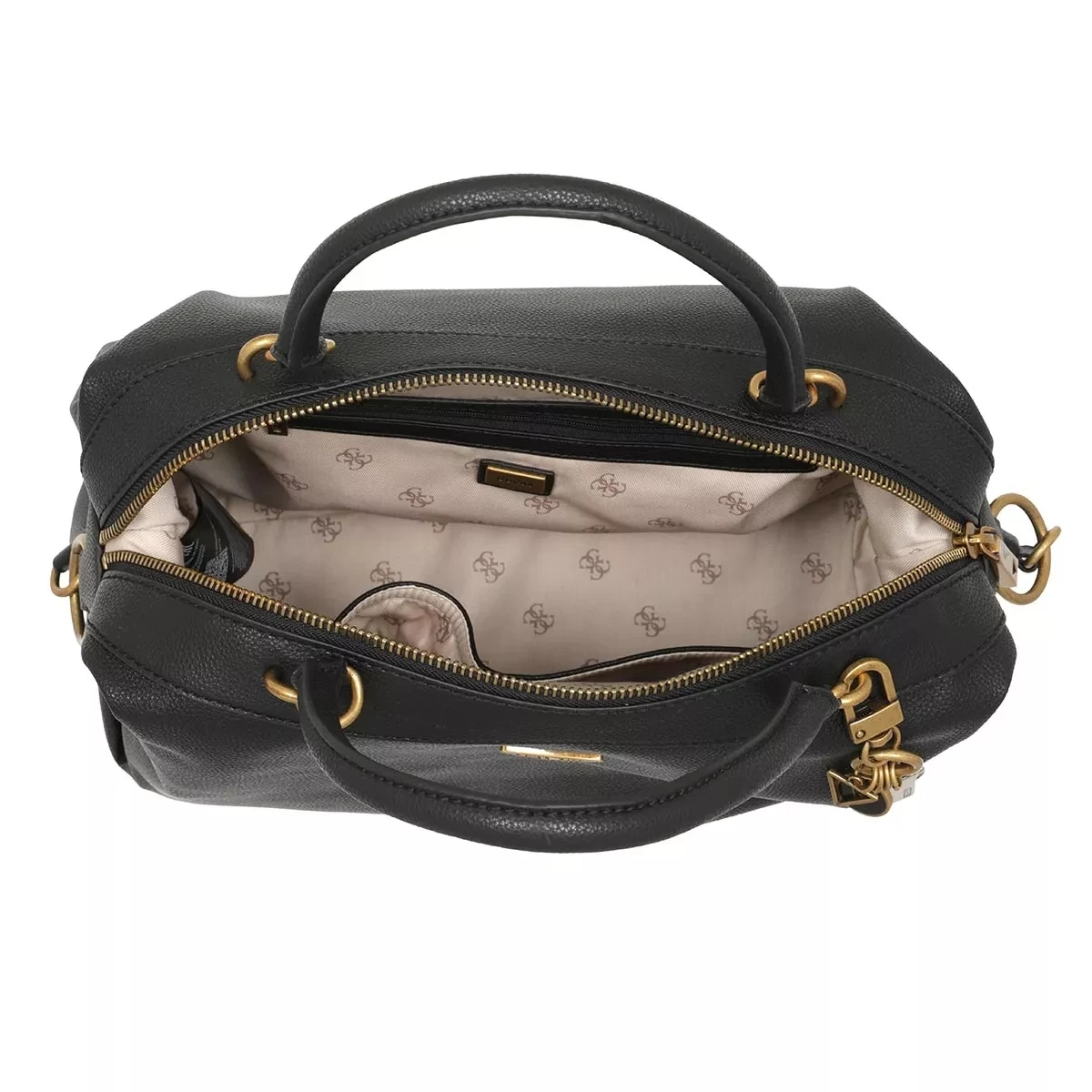 Die praktikable Satchel Destiny Satchel Black von Guess vereint einen entspannten und lockeren Look.