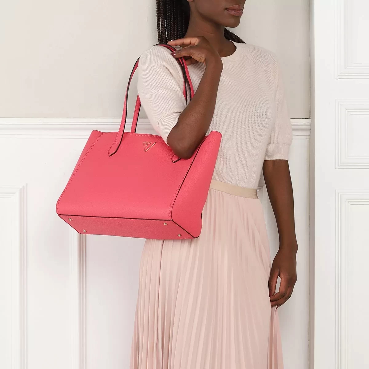 Der handliche Shopper Downtown Chic Turnlock Tote Camelia von Guess vereint einen entspannten und lÀssigen Look.