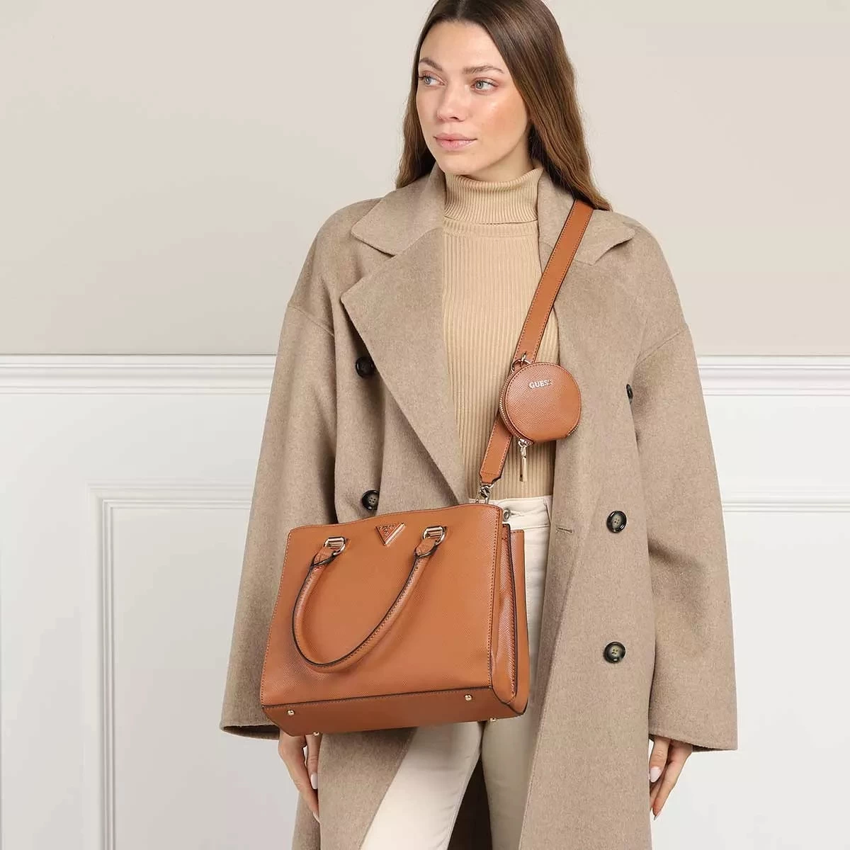 Nostalgisch und detailverliebt – das ist die moderne Satchel Eco Alexie Girlfriend Satchel Cognac von Guess.