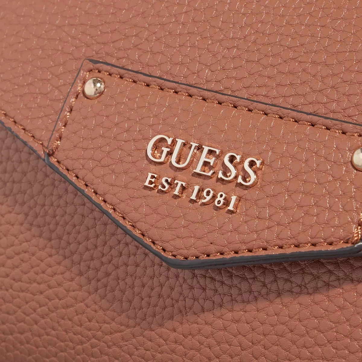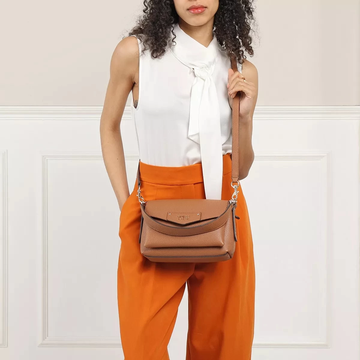 Detailverliebt und individuell – das ist die handliche Satchel Eco Brenton Flap Shoulder Bag Caramel von Guess.