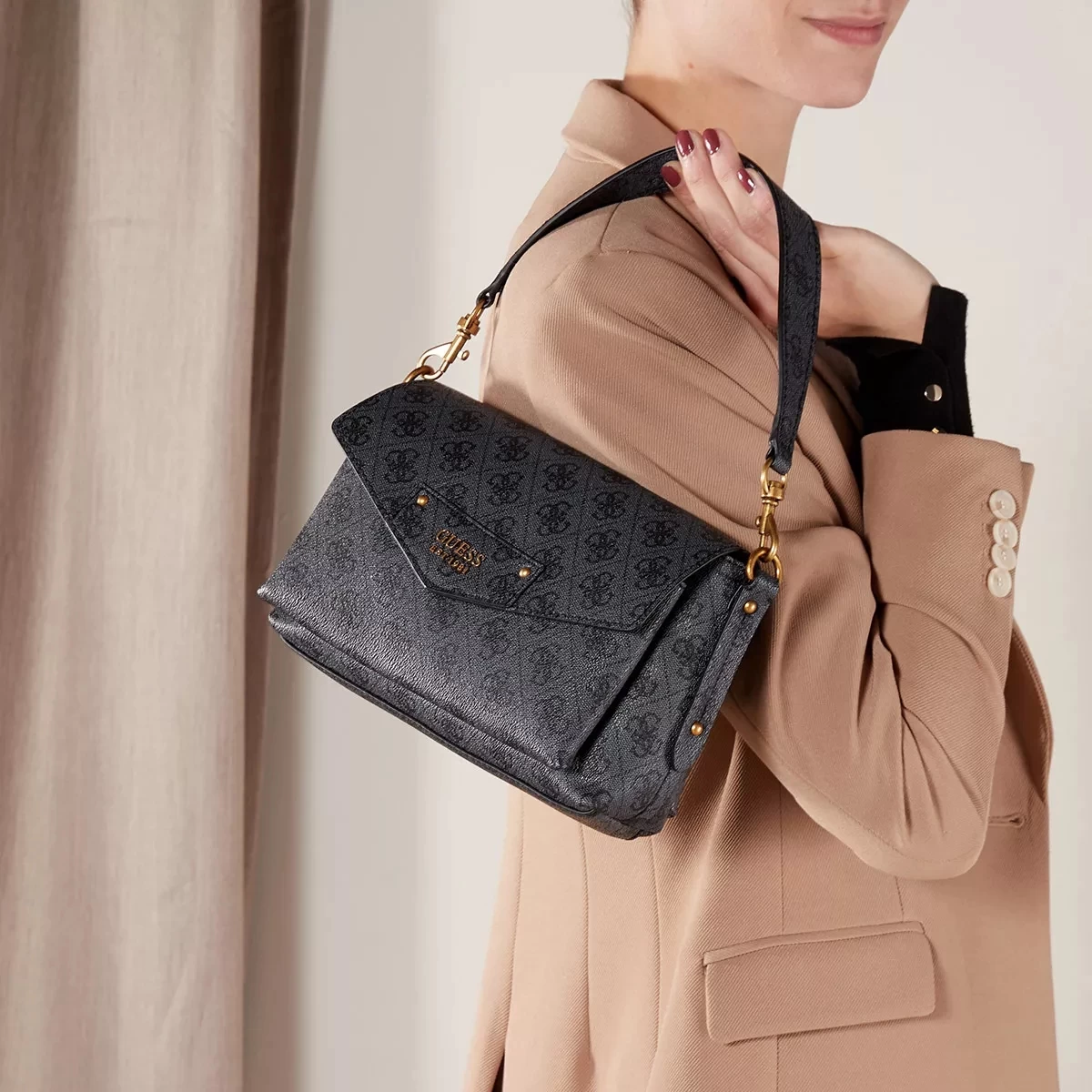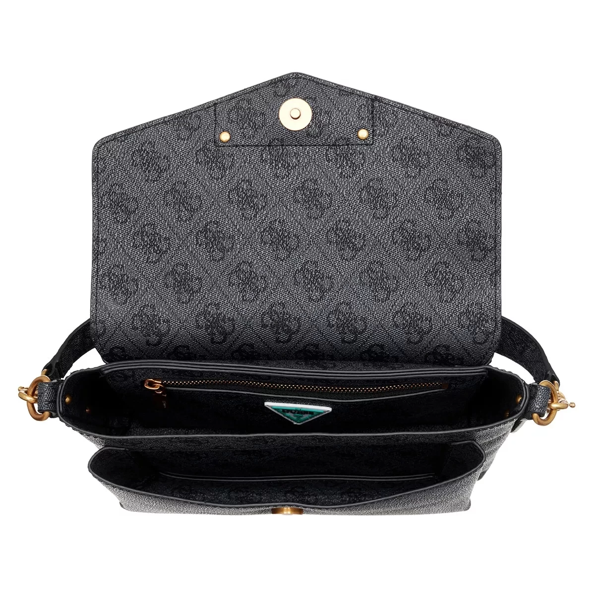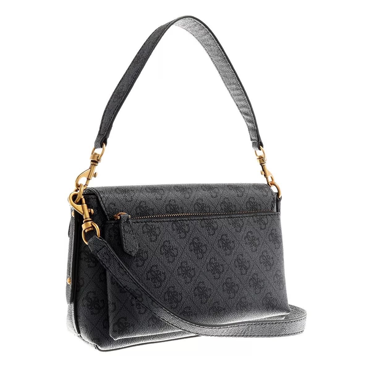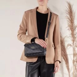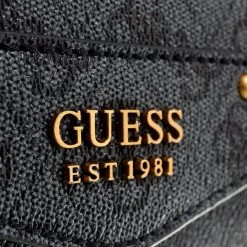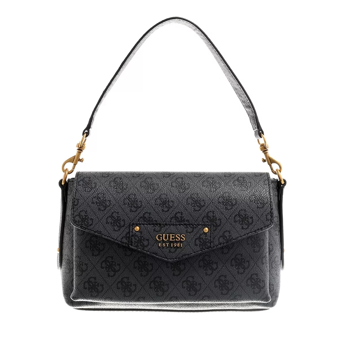 Die handliche Satchel Eco Brenton Flap Shoulder Bag Coal Logo von Guess vereint einen klassischen und zeitlosen Look.
