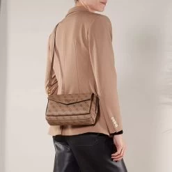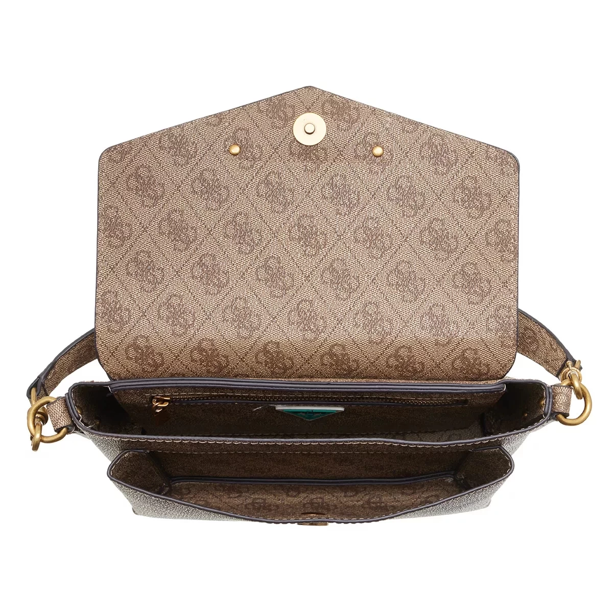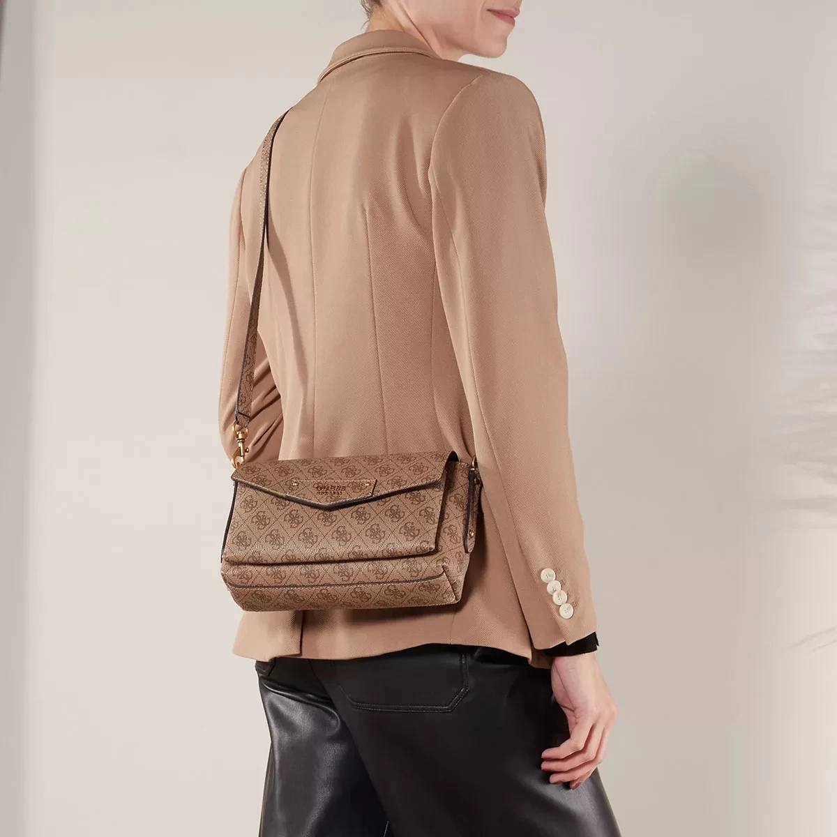 Die handliche Satchel Eco Brenton Flap Shoulder Bag Latte Logo von Guess vereint einen eleganten und stilvollen Look.