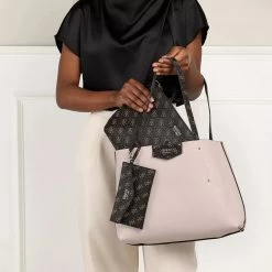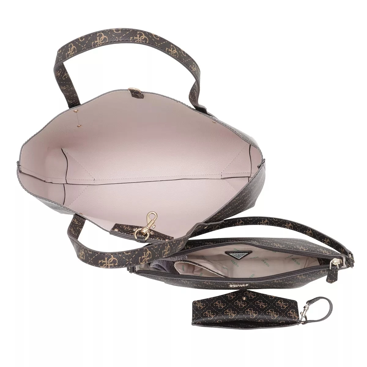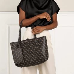 Als besonders schick und zeitlos zeigt sich der groĂźzĂĽgige Shopper Eco Brenton Tote Brown Logo von Guess.
