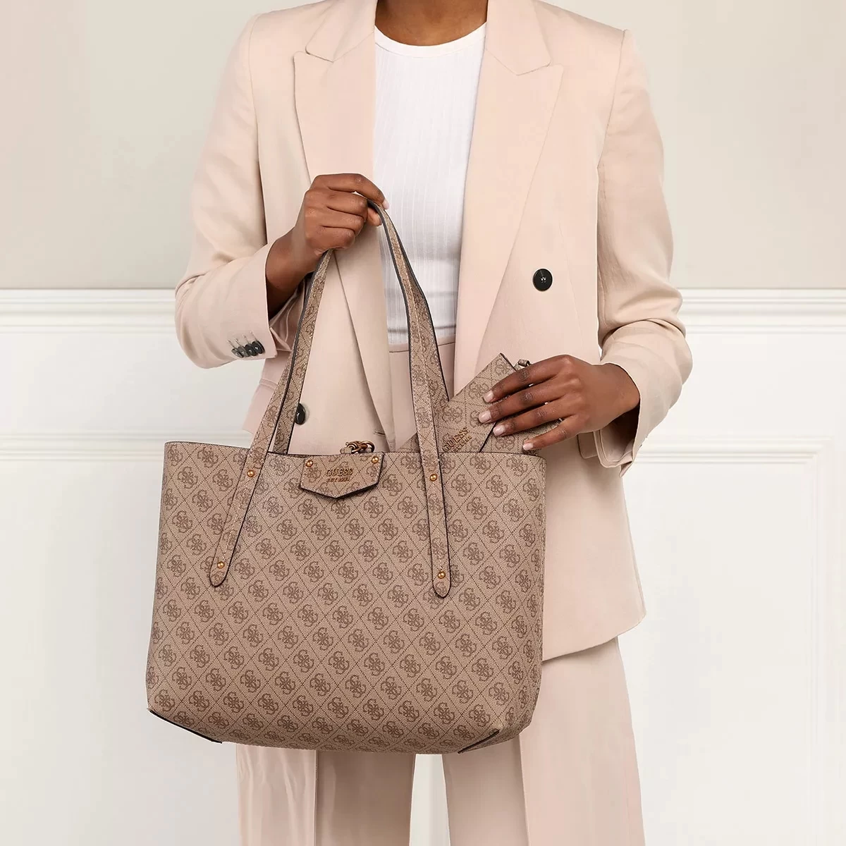 Der Eco Brenton Tote Latte Logo von Guess ist entspannt und bleibt daneben funktional.
