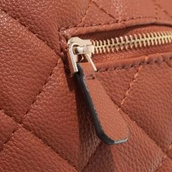 - Bestehend aus genarbtem Kunstleder und gestepptem Kunstleder in Cognacbraun