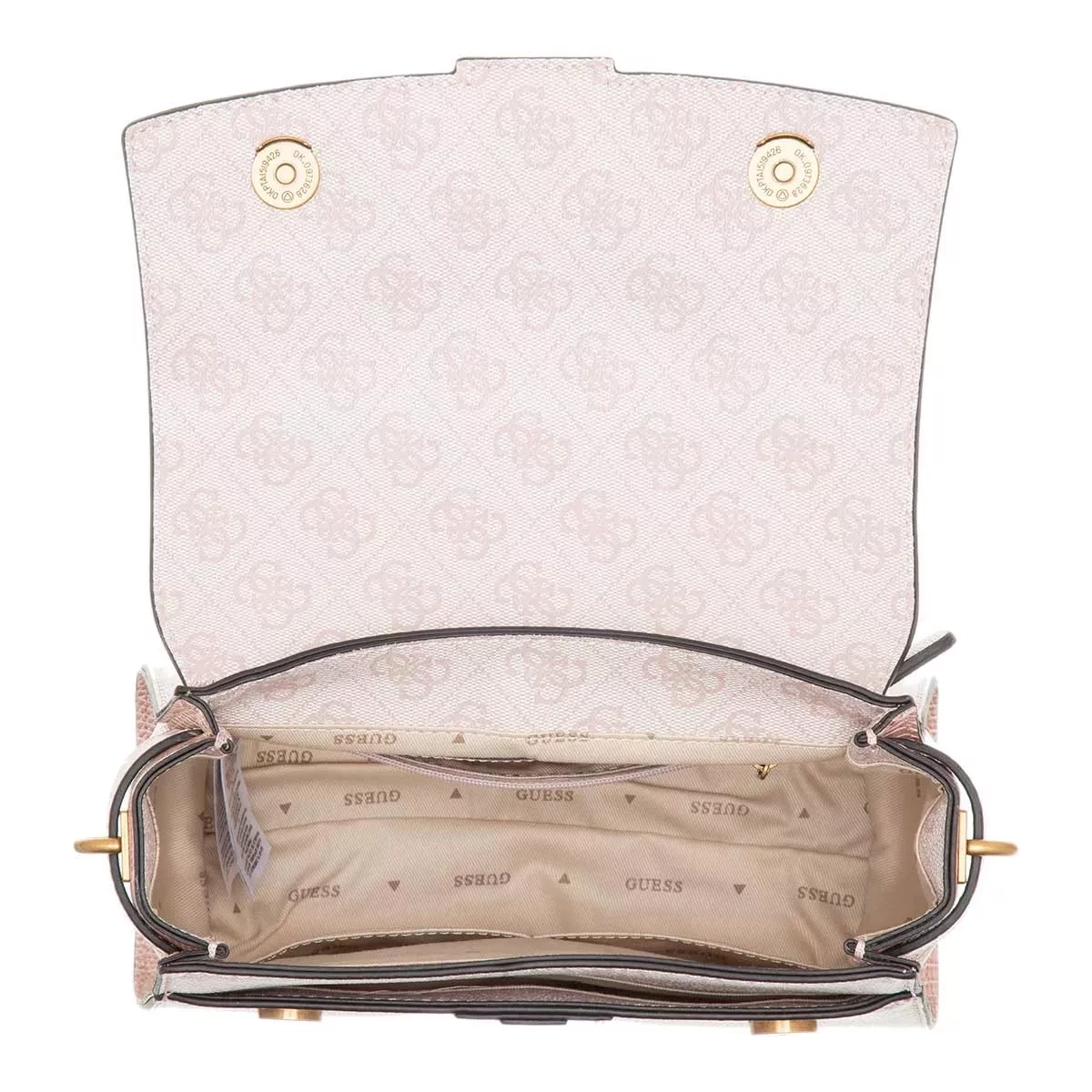 Die Ginevra Logo Top Handle Flap Blush Logo von Guess ist schlicht und bleibt dazu vielseitig.