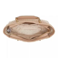 - Tascheninneres gefertigt aus weichem, beigem Textil mit Markenlogo